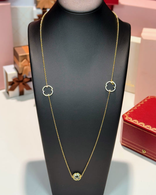 Assorted Colorstones Four Leaf Clover Design 14k Yellow Gold Pendant Necklace