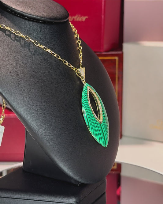 Green Malachite 14k Yellow Gold Pendant Necklace