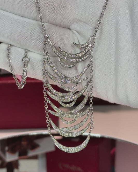14k White Gold Multi-layered Crescents Diamond Necklace