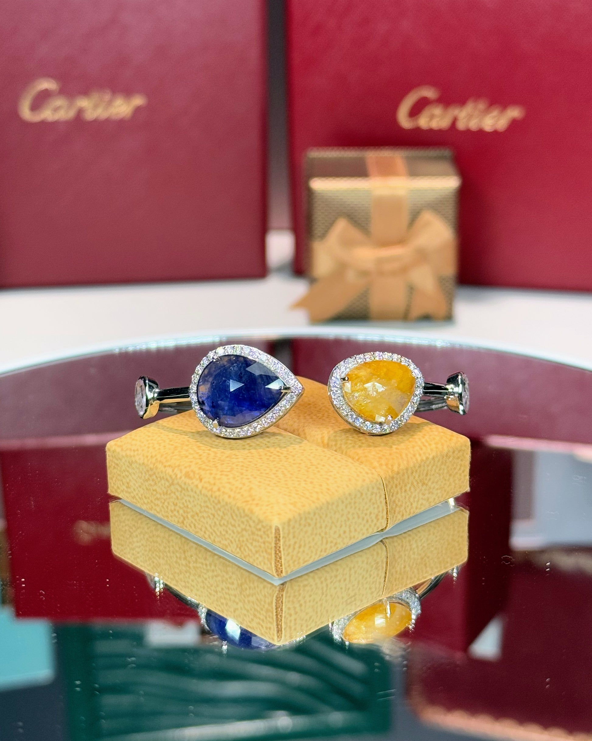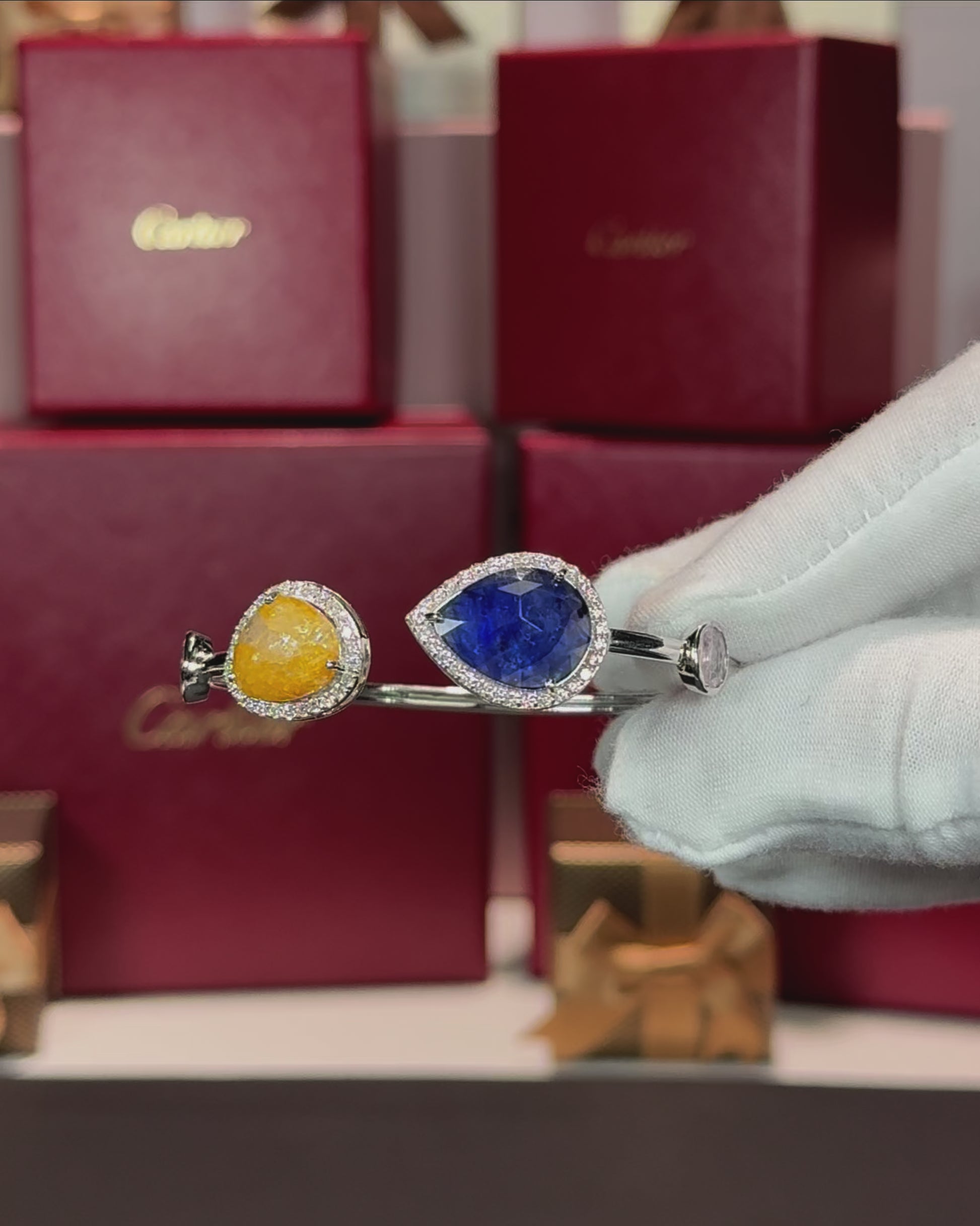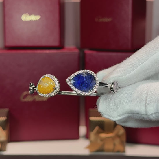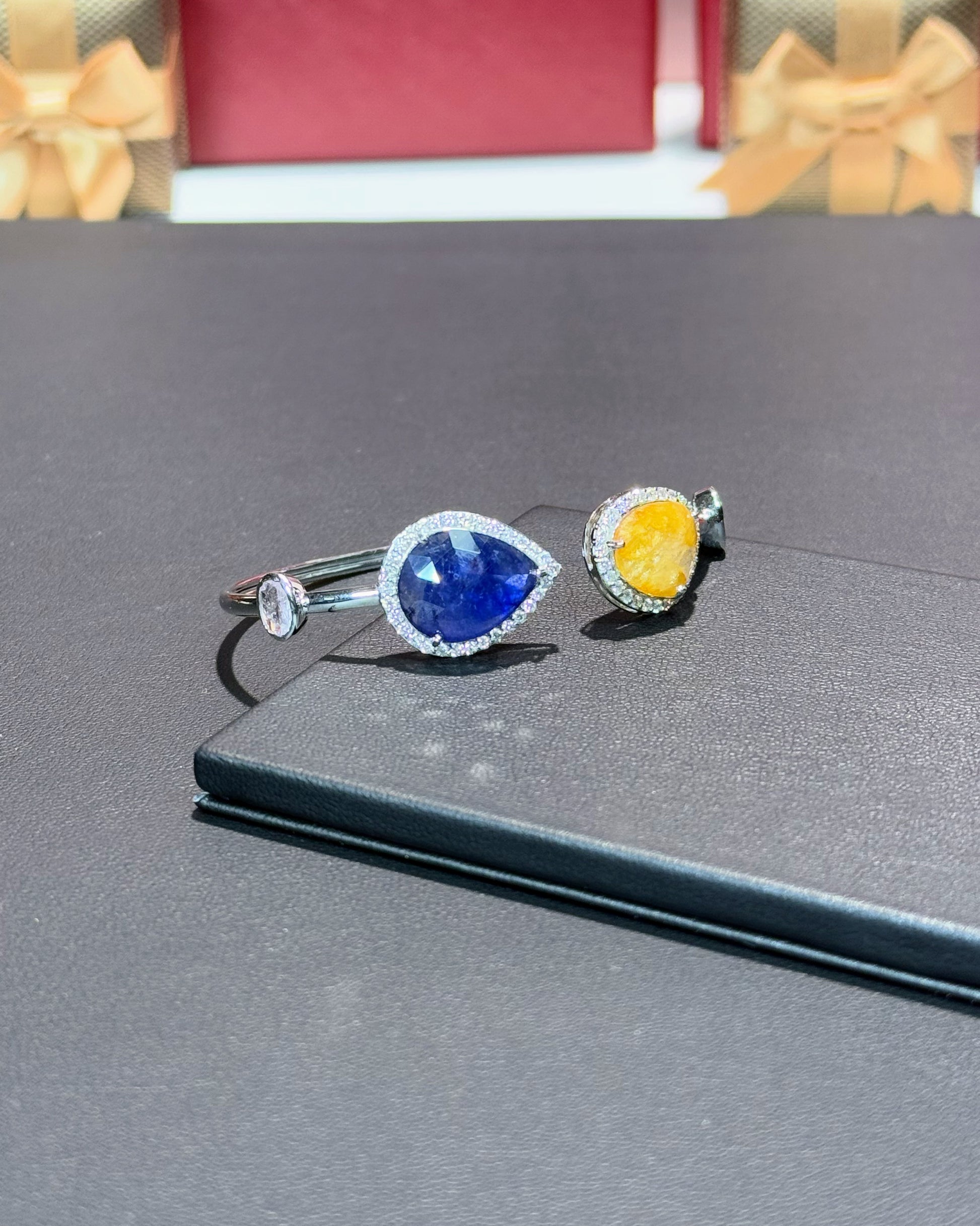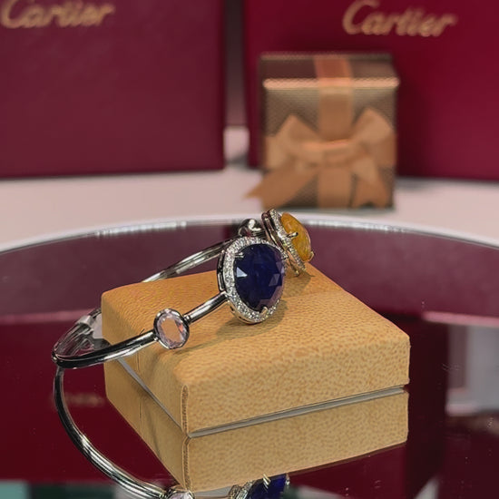 14k White Gold Sapphire Halo Open Cuff Bangle