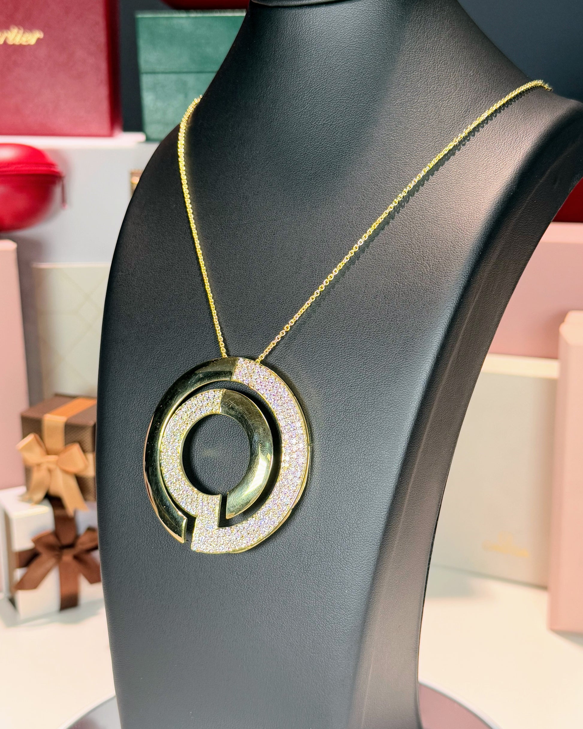 14k Yellow Gold Circle Maze Pendant Necklace
