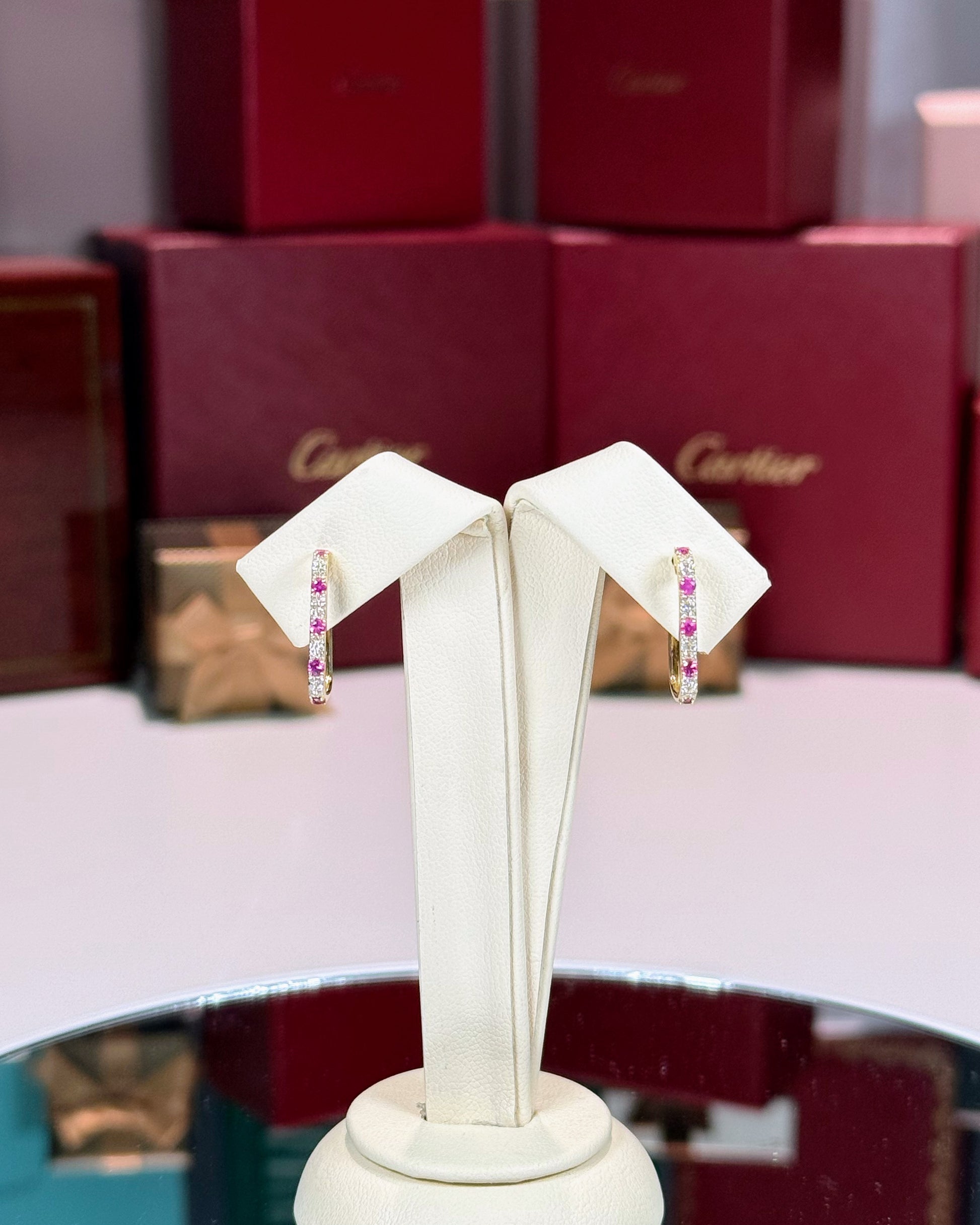 14k Yellow Gold Ruby and Diamond Huggie Earrings