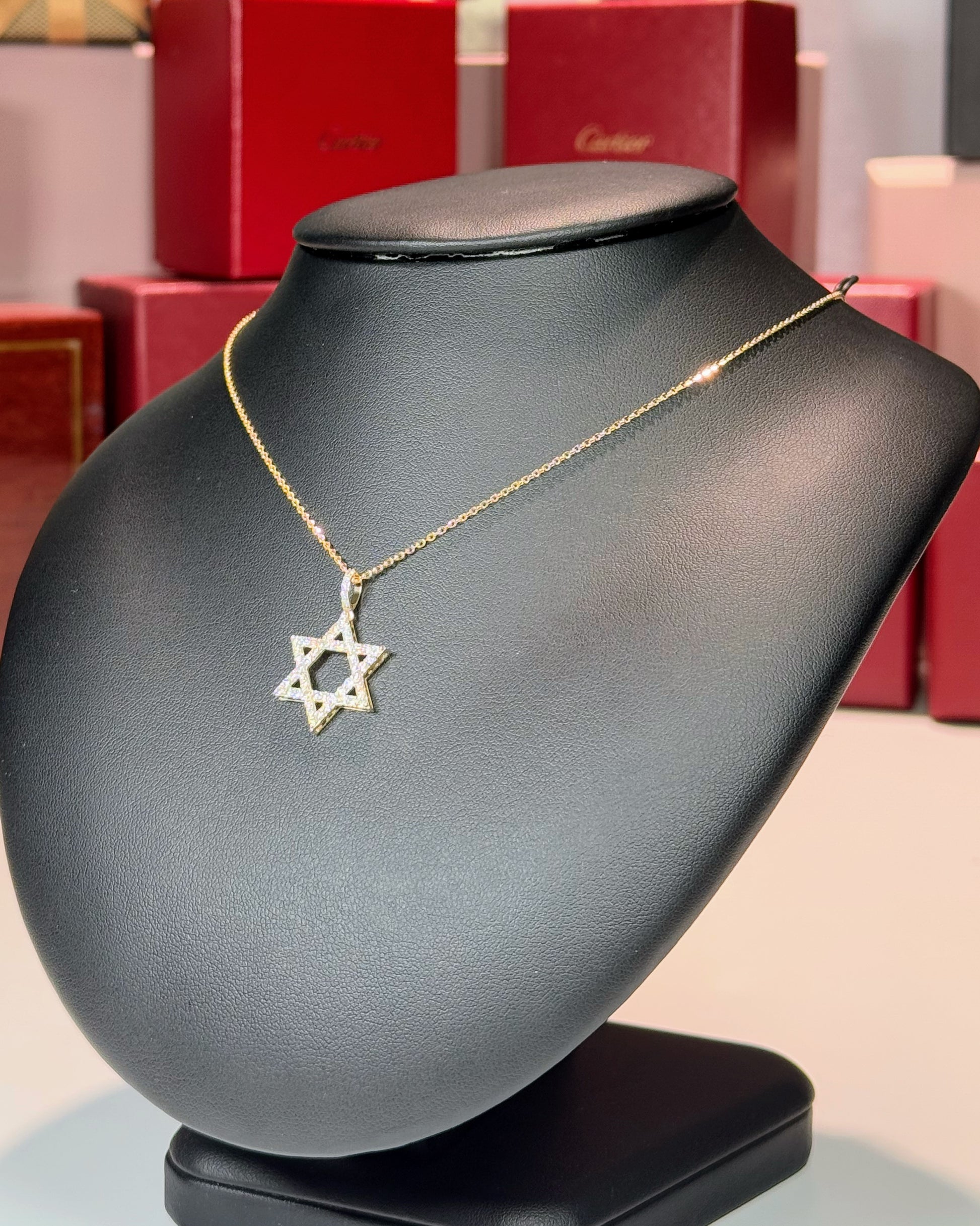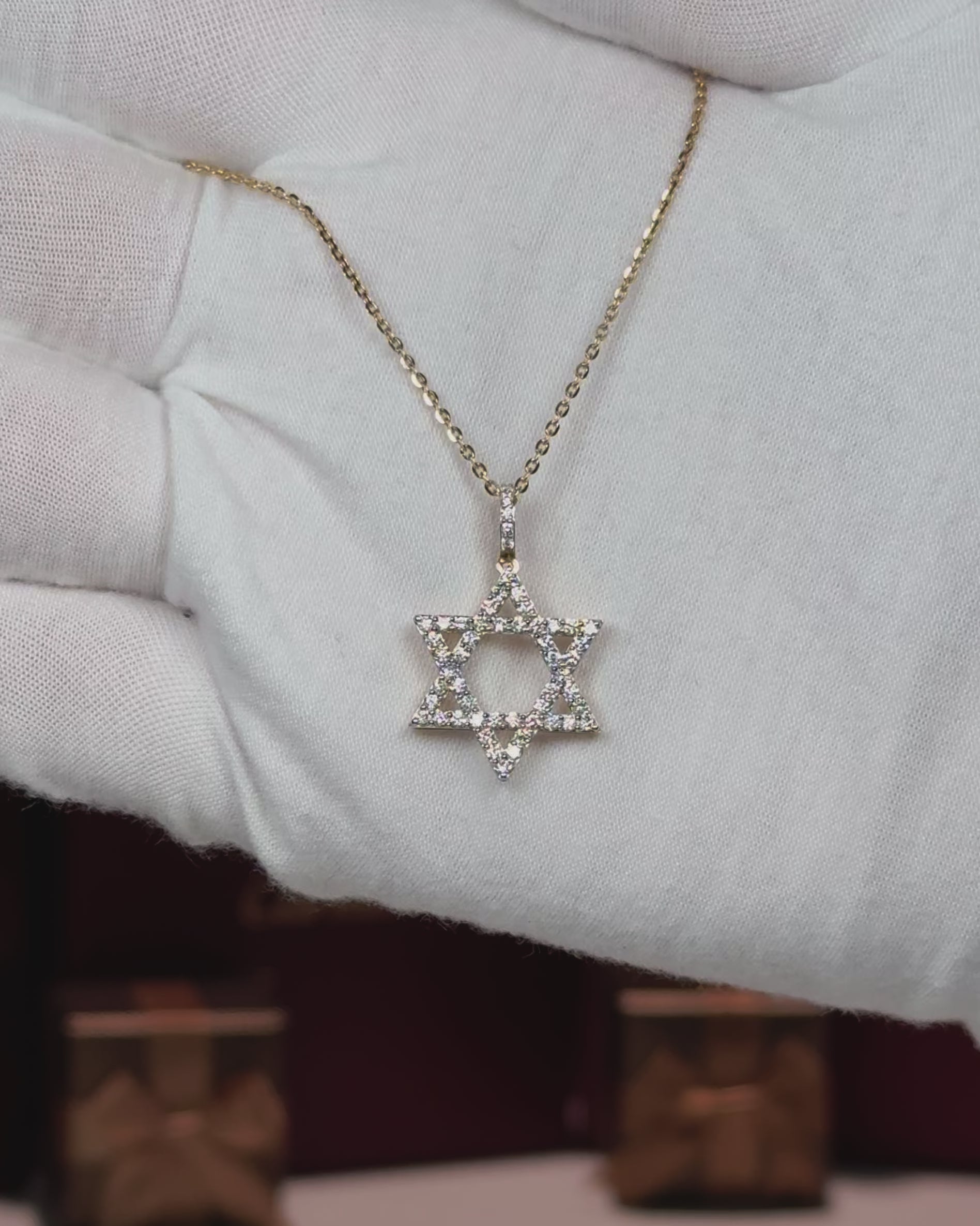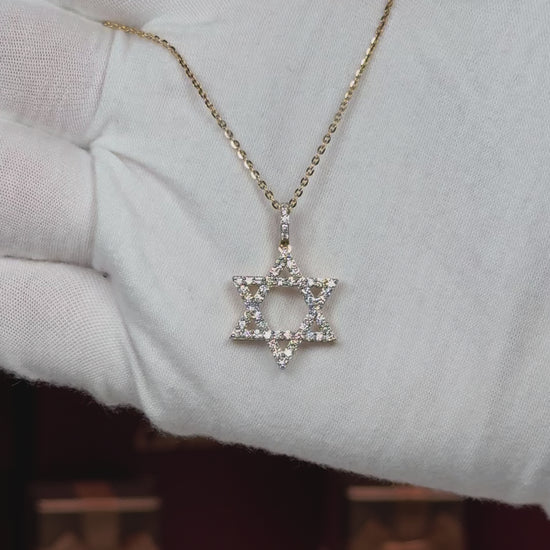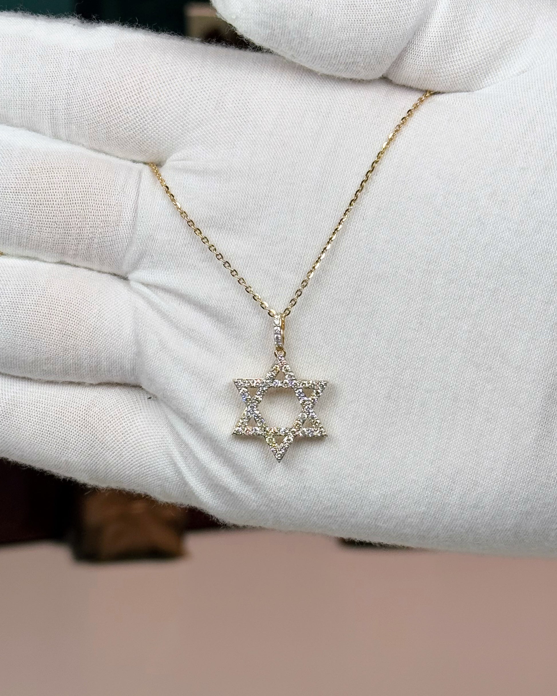 14k Yellow Gold Star of David Diamond Pendant Necklace