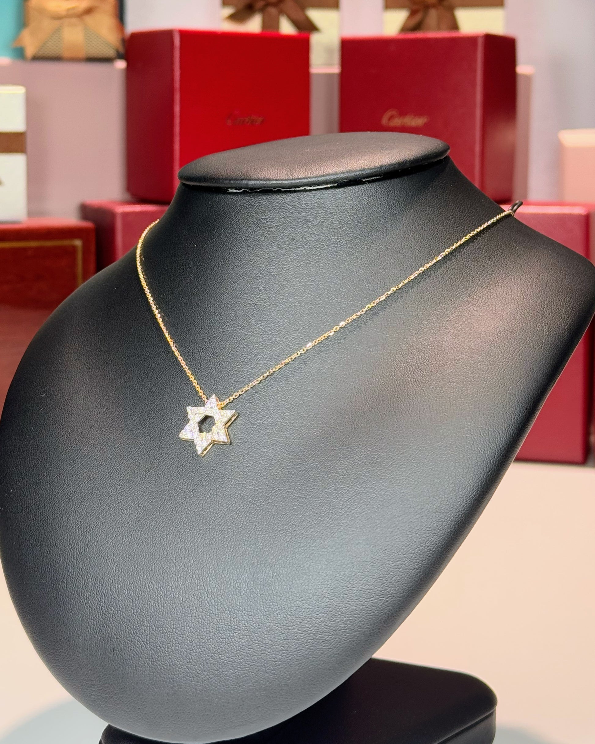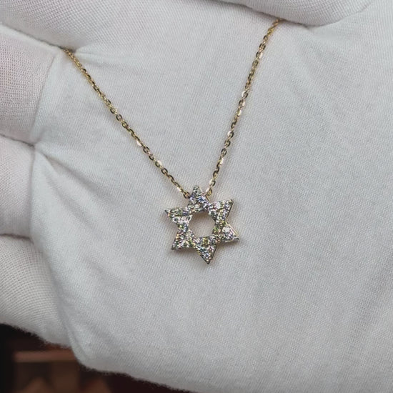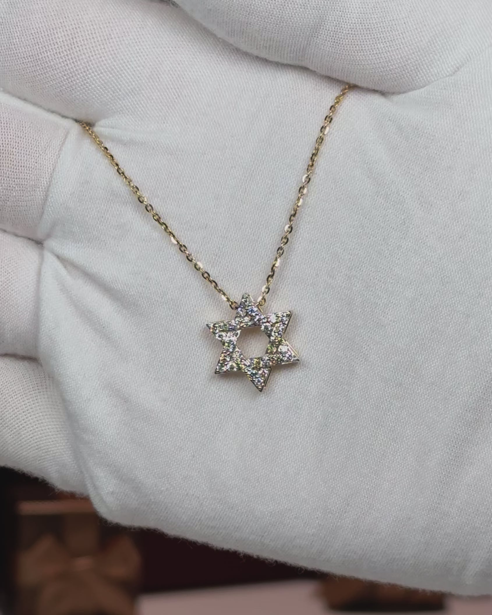 14k Yellow Gold Star of David Diamond Pendant Necklace