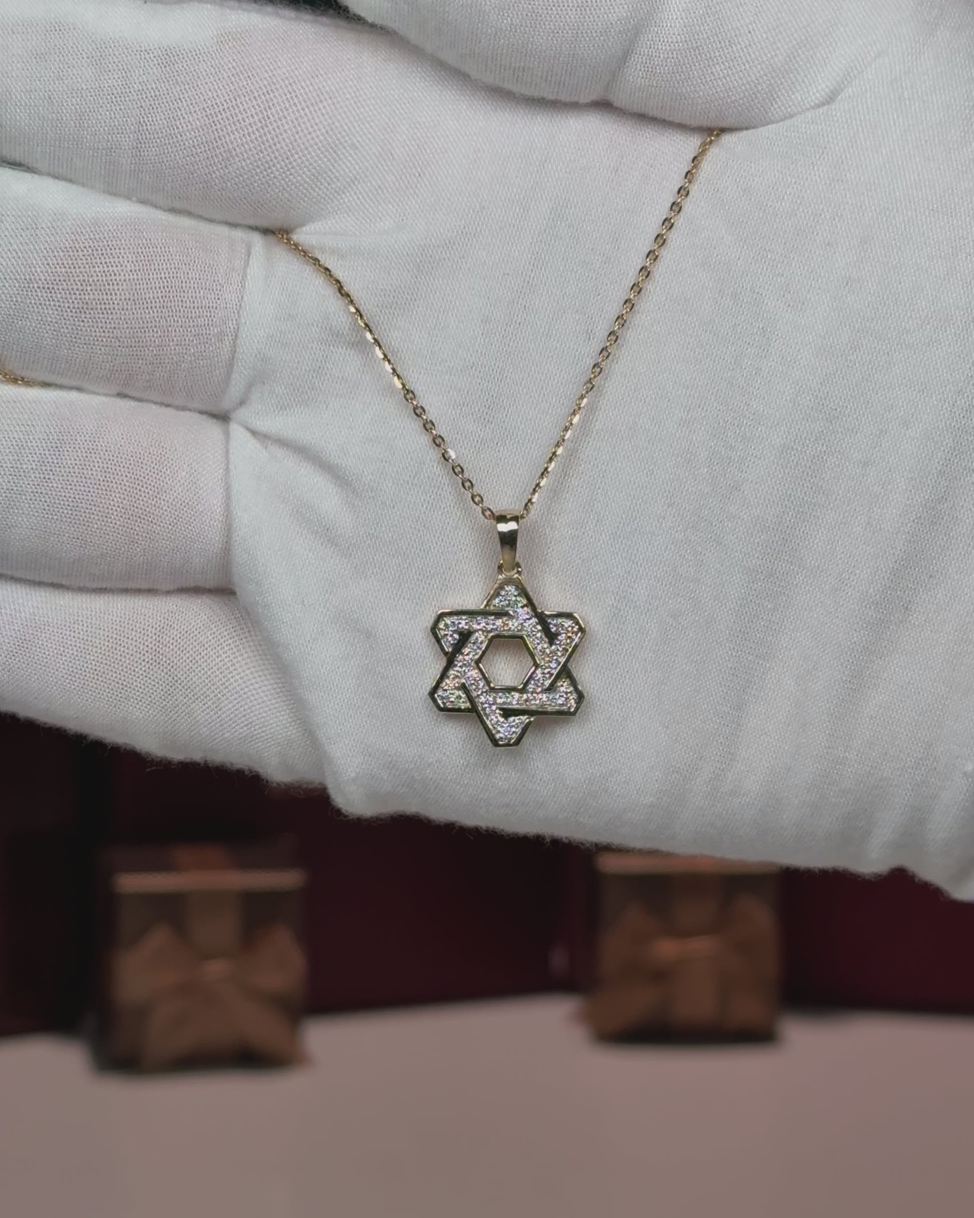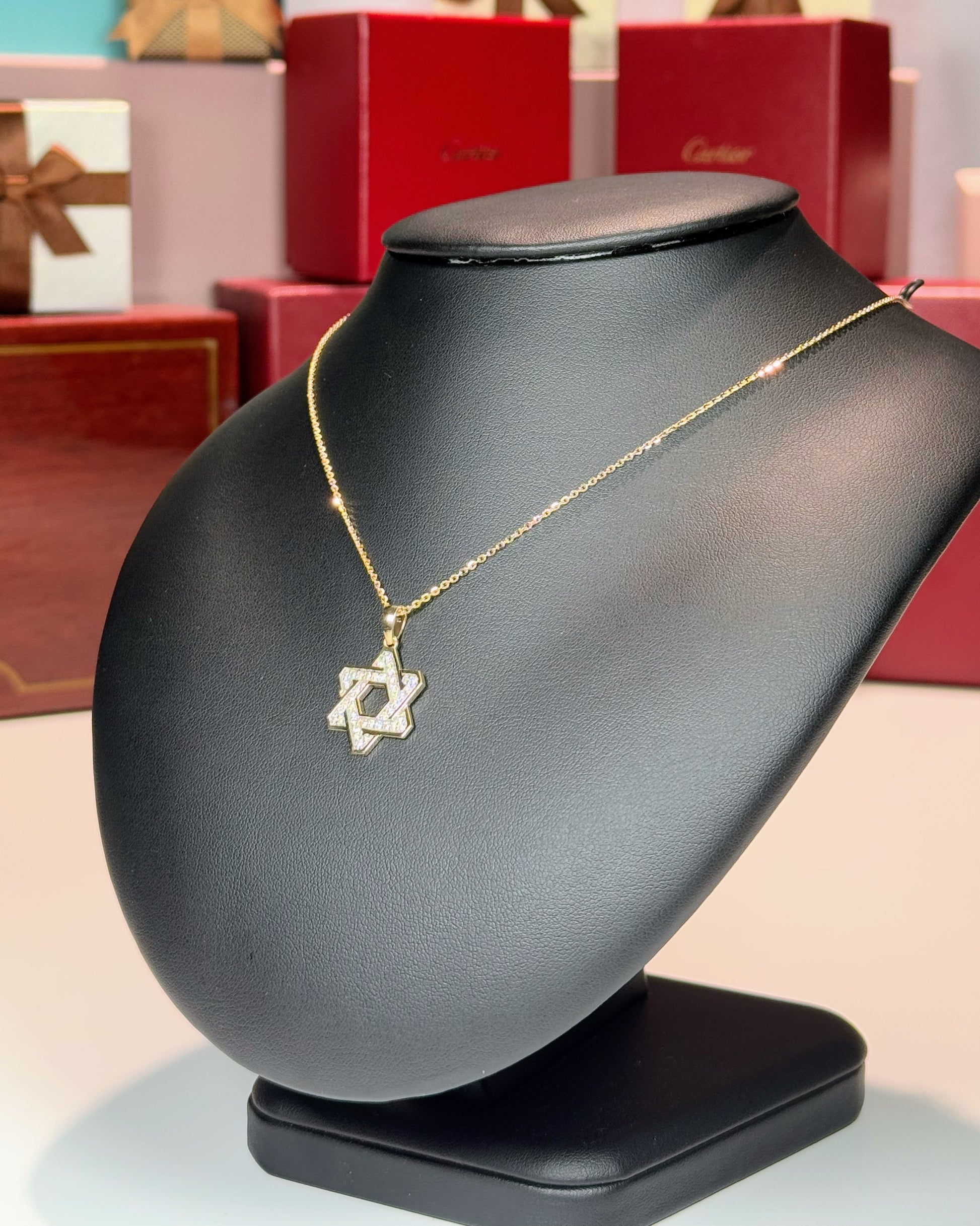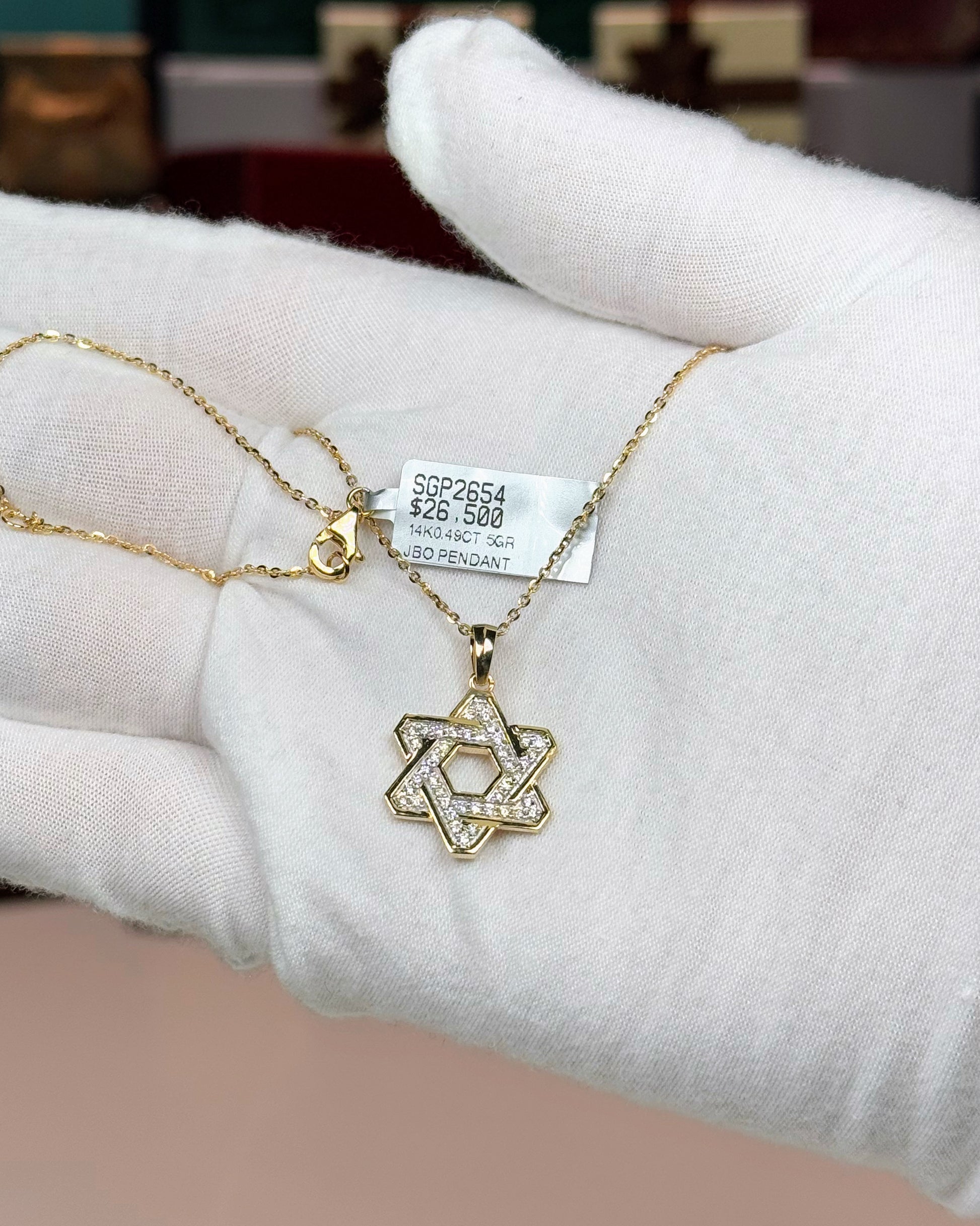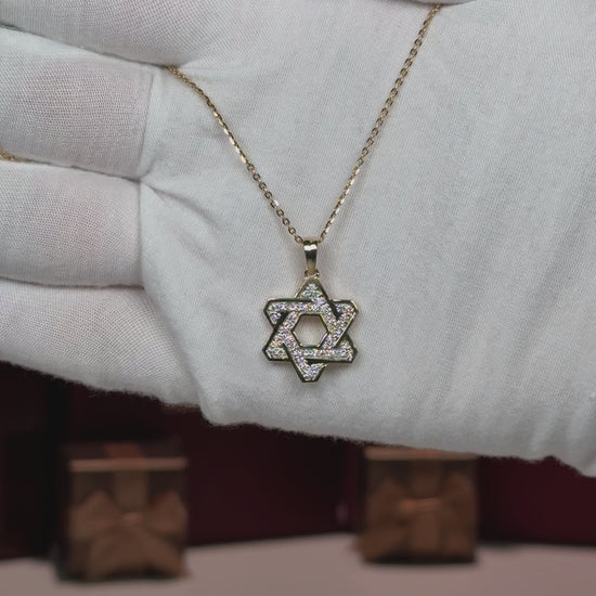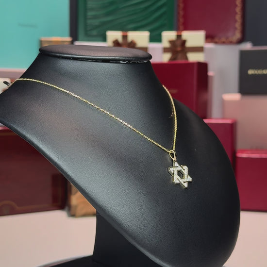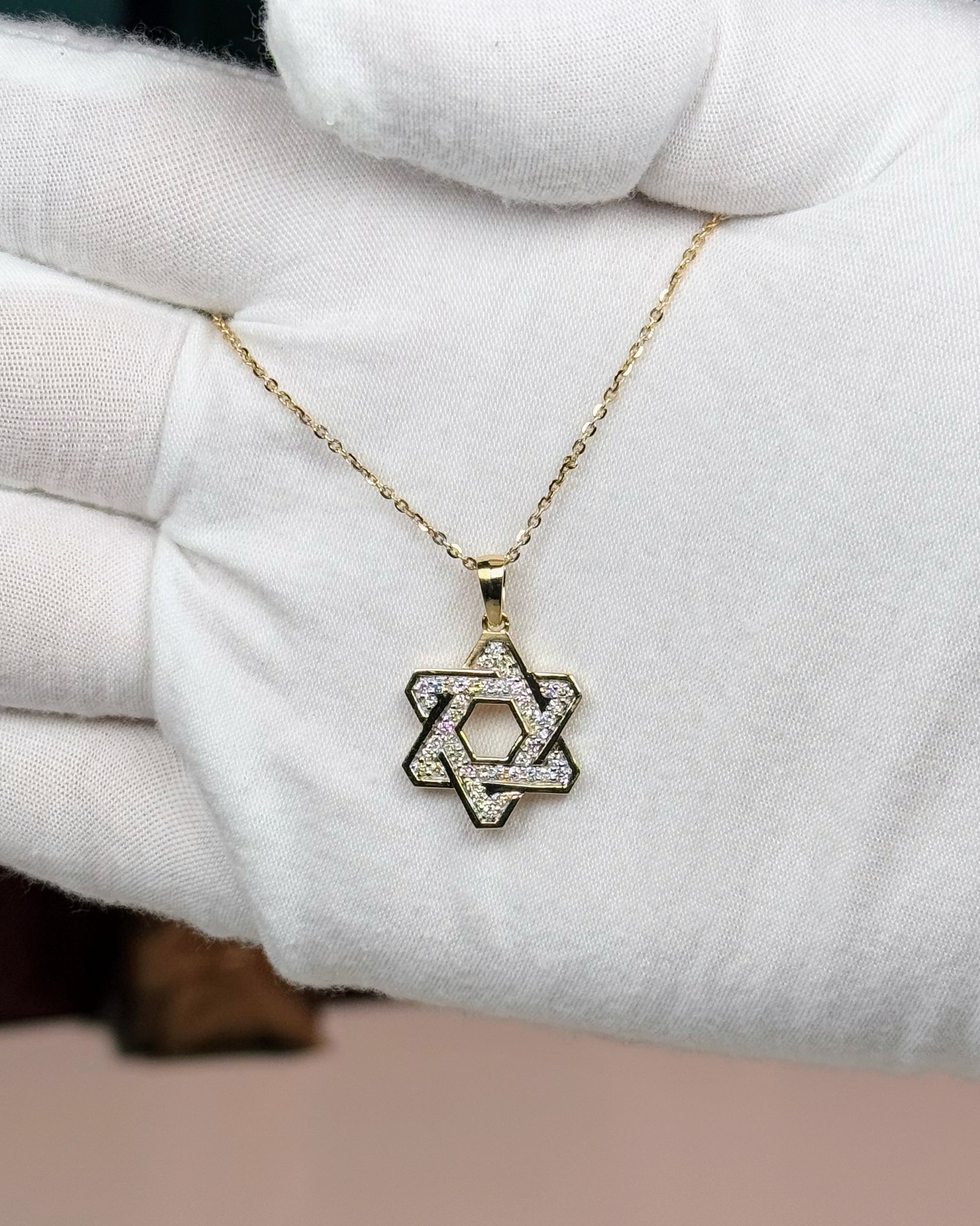 14k Yellow Gold Star of David Diamond Pendant Necklace