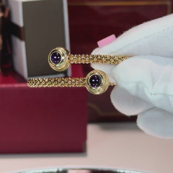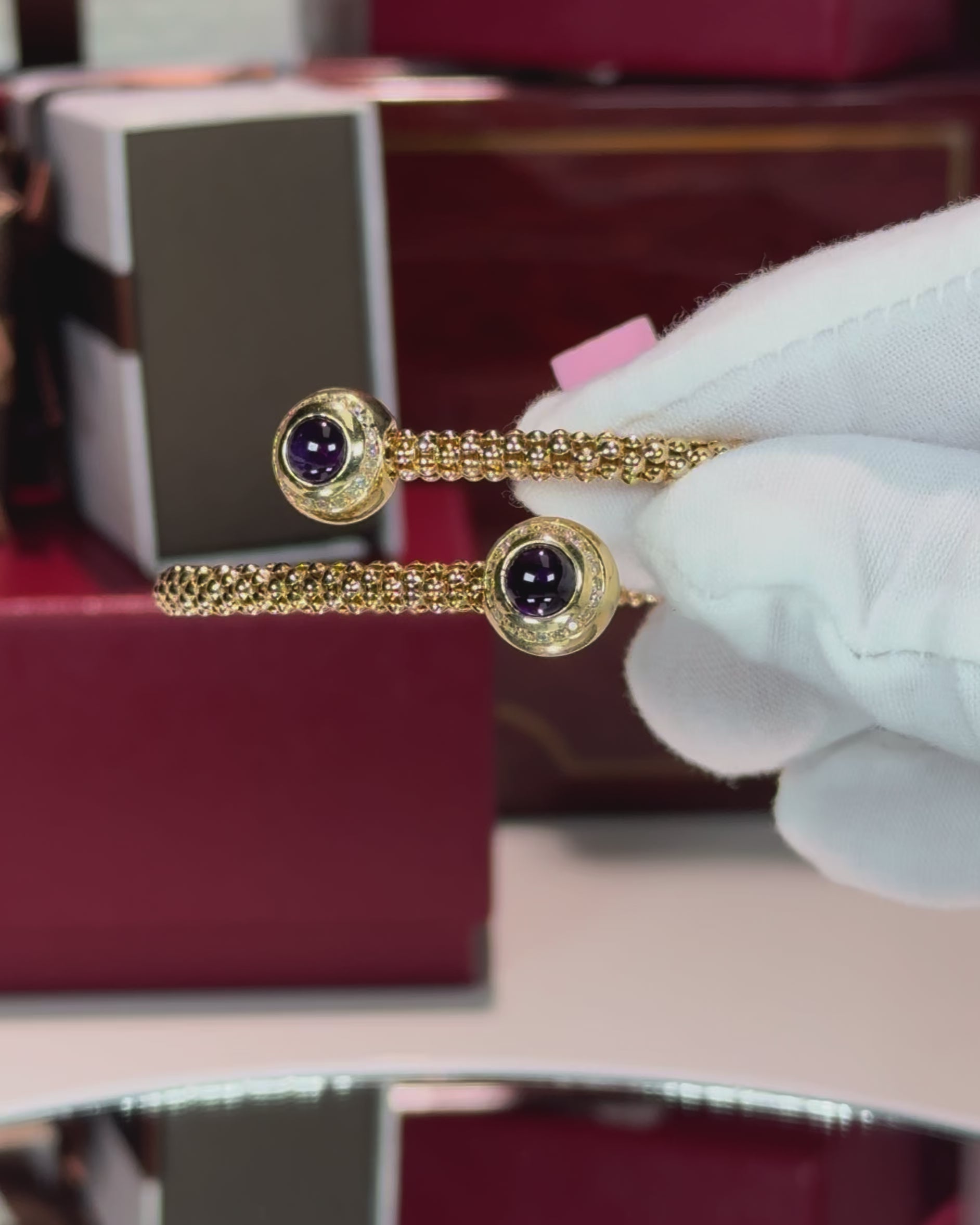 Amethyst and Diamond 14k Yellow Gold Bangle