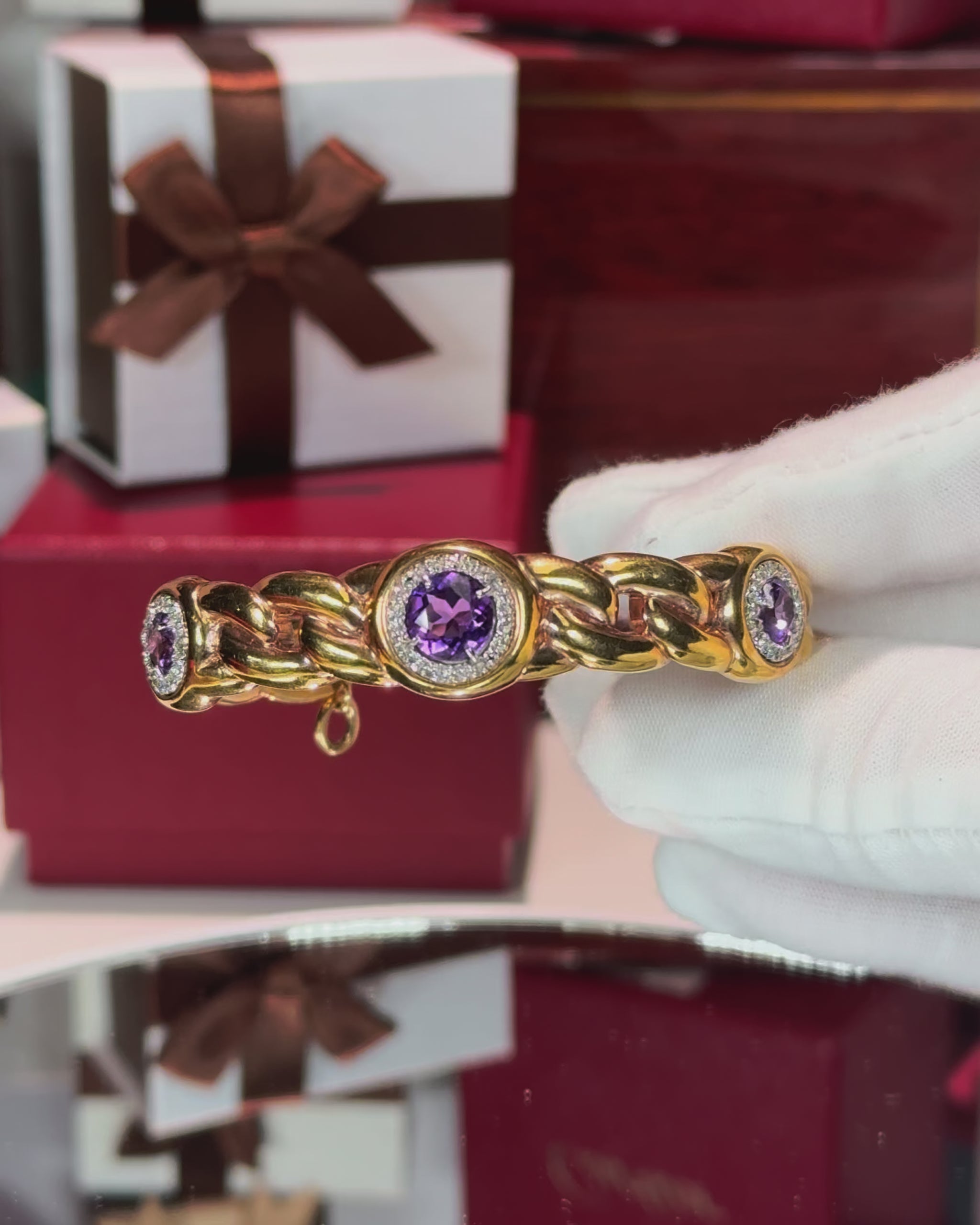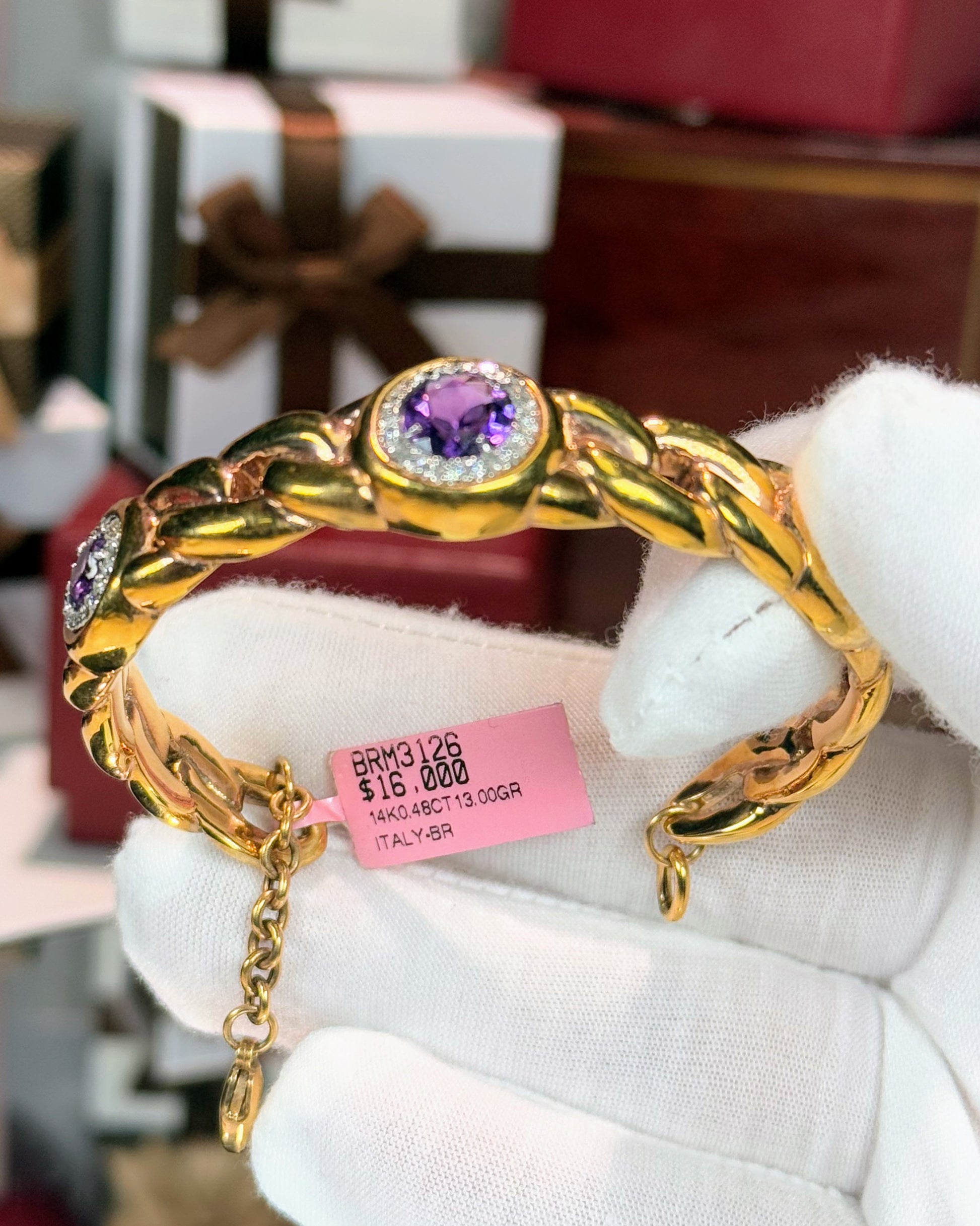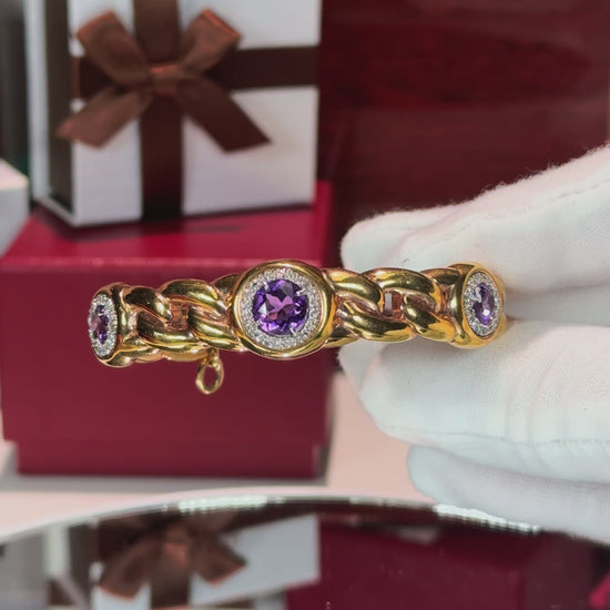 Amethyst and Diamond 14k Yellow Gold Chain Bracelet
