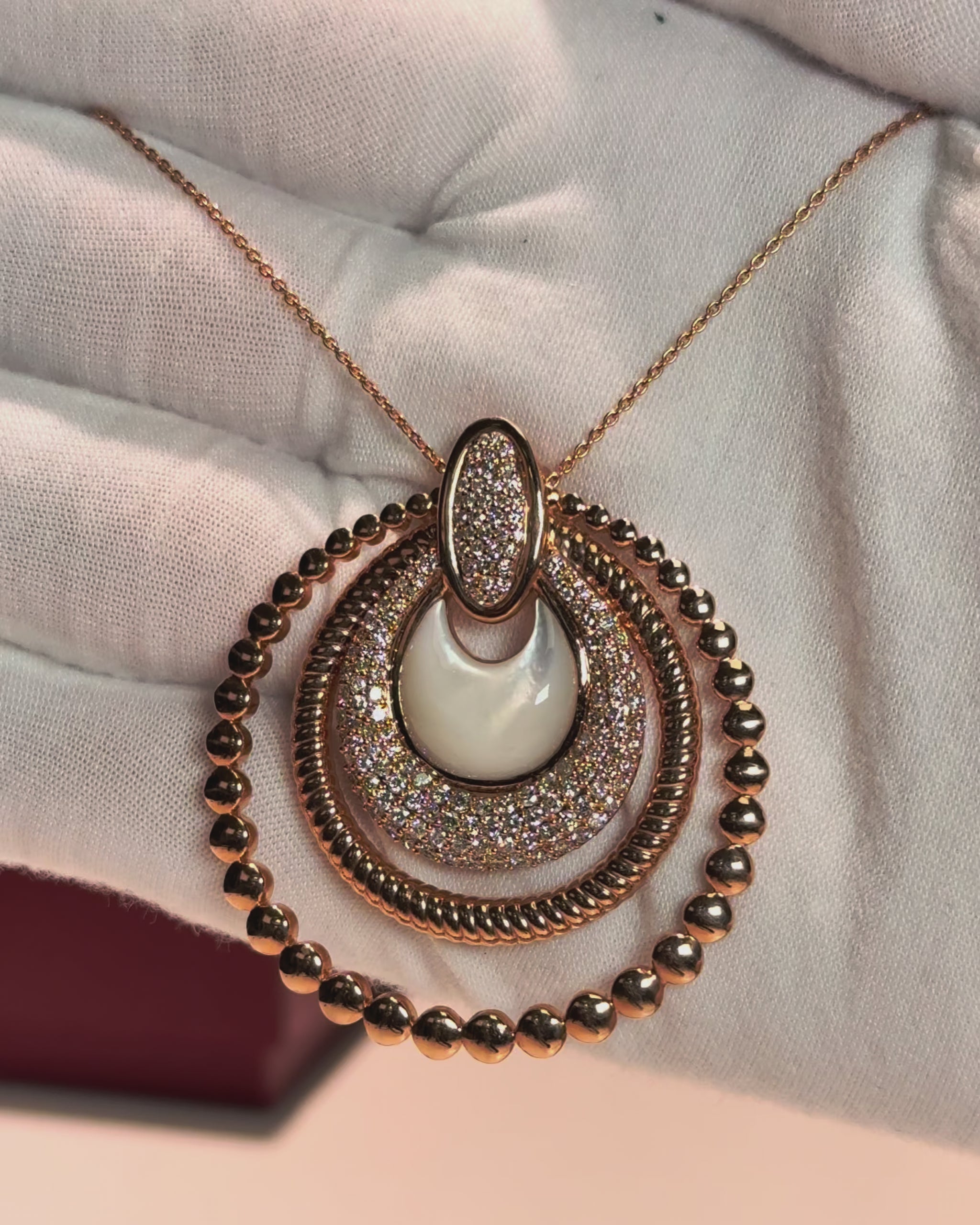 Assorted Rings Design 14k Rose Gold MoP and Diamond Pendant Necklace