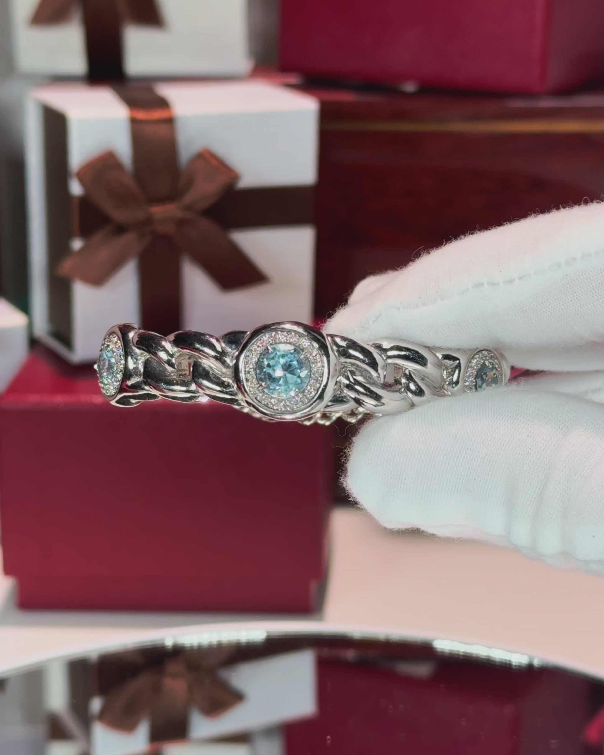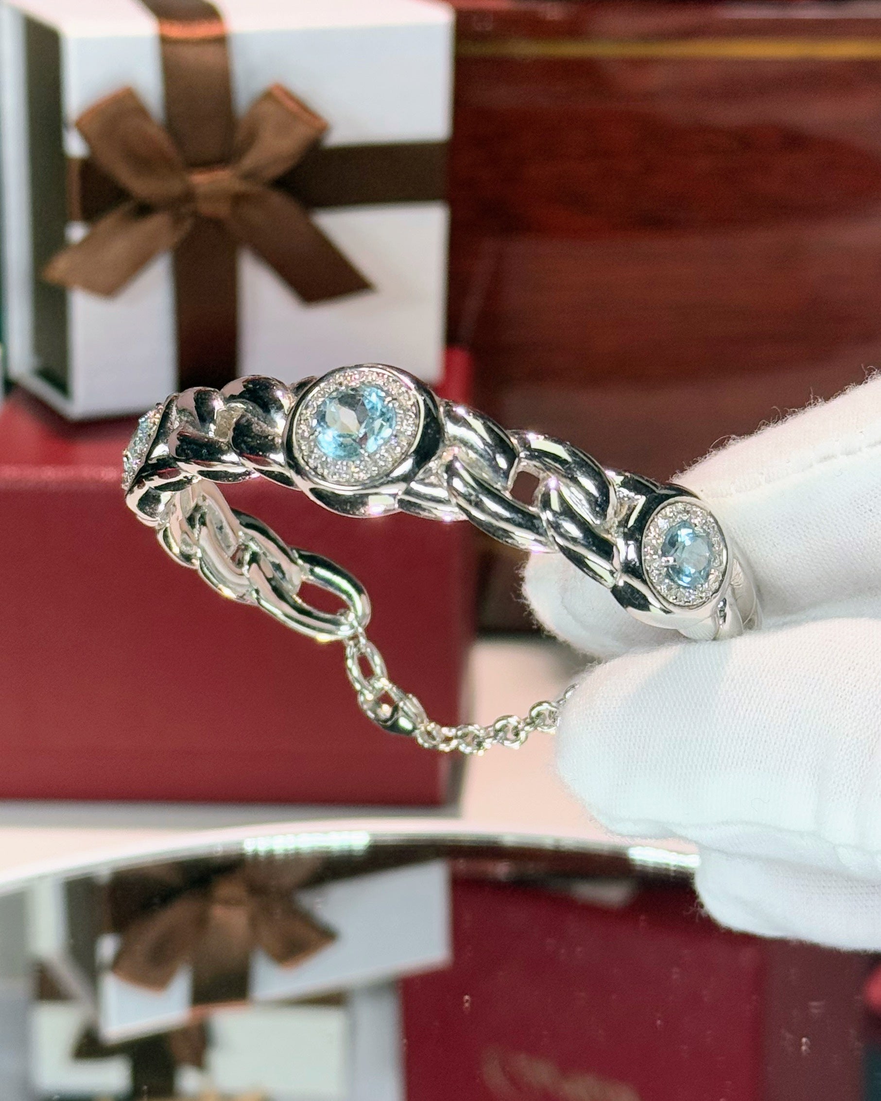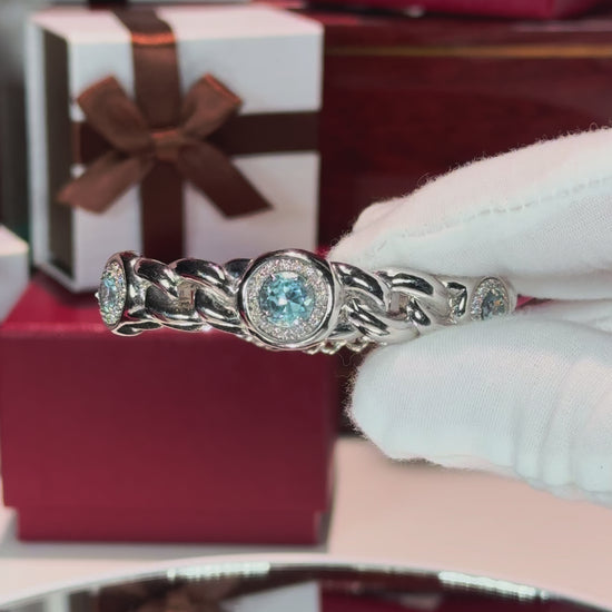 Blue Topaz and Diamond 14k White Gold Chain Bracelet
