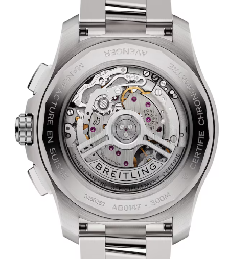 For optimum performance, this timepiece is powered by Breitling 01 calibre movement, which provides a 70-hour power reserve, is water resistant to 30 bar (300 metres), and is framed by a unidirectional, ratcheted bezel .