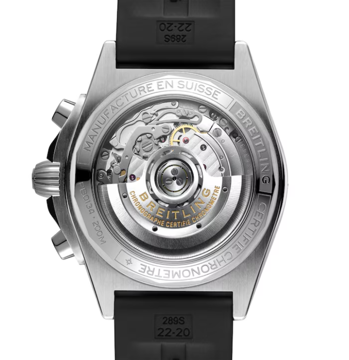 This exceptional timepiece is powered by the Breitling 01 calibre movement, a COSC-certified chronometer. Water resistance to 20 bar (200 metres) and a 70-hour power reserve further enhance functionality.