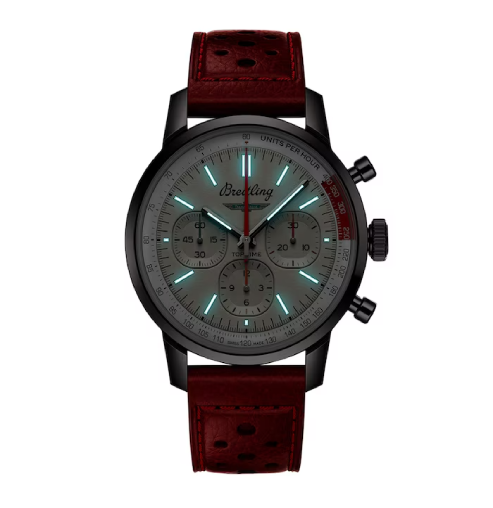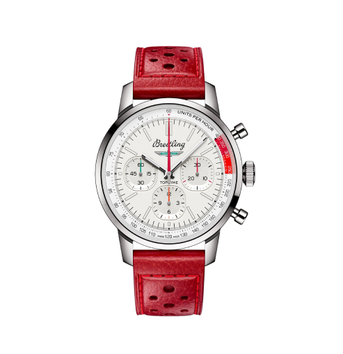 Under the hood, the Breitling Manufacture Calibre 01 movement ensures flawless precision and offers a 70-hour power reserve, while a perforated red leather racing strap completes the look.
