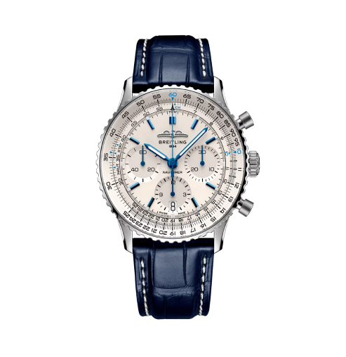 Vibrant blue details on the dial provide character and charm to this reliable, navigational timepiece. Balanced by a central 24 hour scale on the GMT, a slide rule scale, and a date display, this watch encompasses the iconic Navitimer aesthetic.
