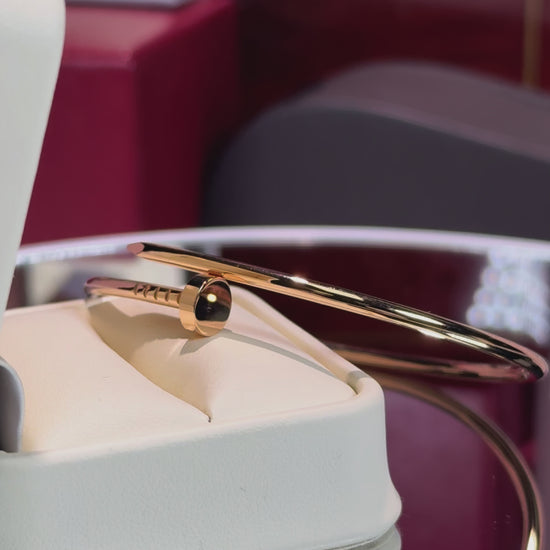 A nail becomes jewelry. Designed in 1970s New York, the first Juste un Clou bracelet reflected a wild, freewheeling era. Bold, modern, and innovative, Juste un Clou is a creative twist on a familiar object. This jewelry collection transcends the everyday, making the ordinary exquisite, for him and for her.
