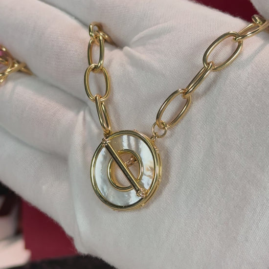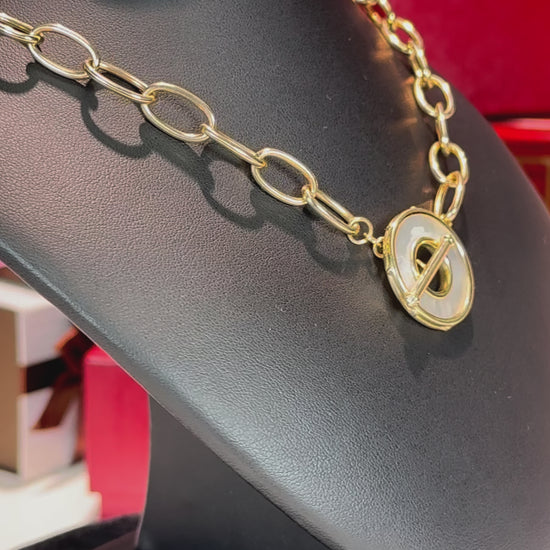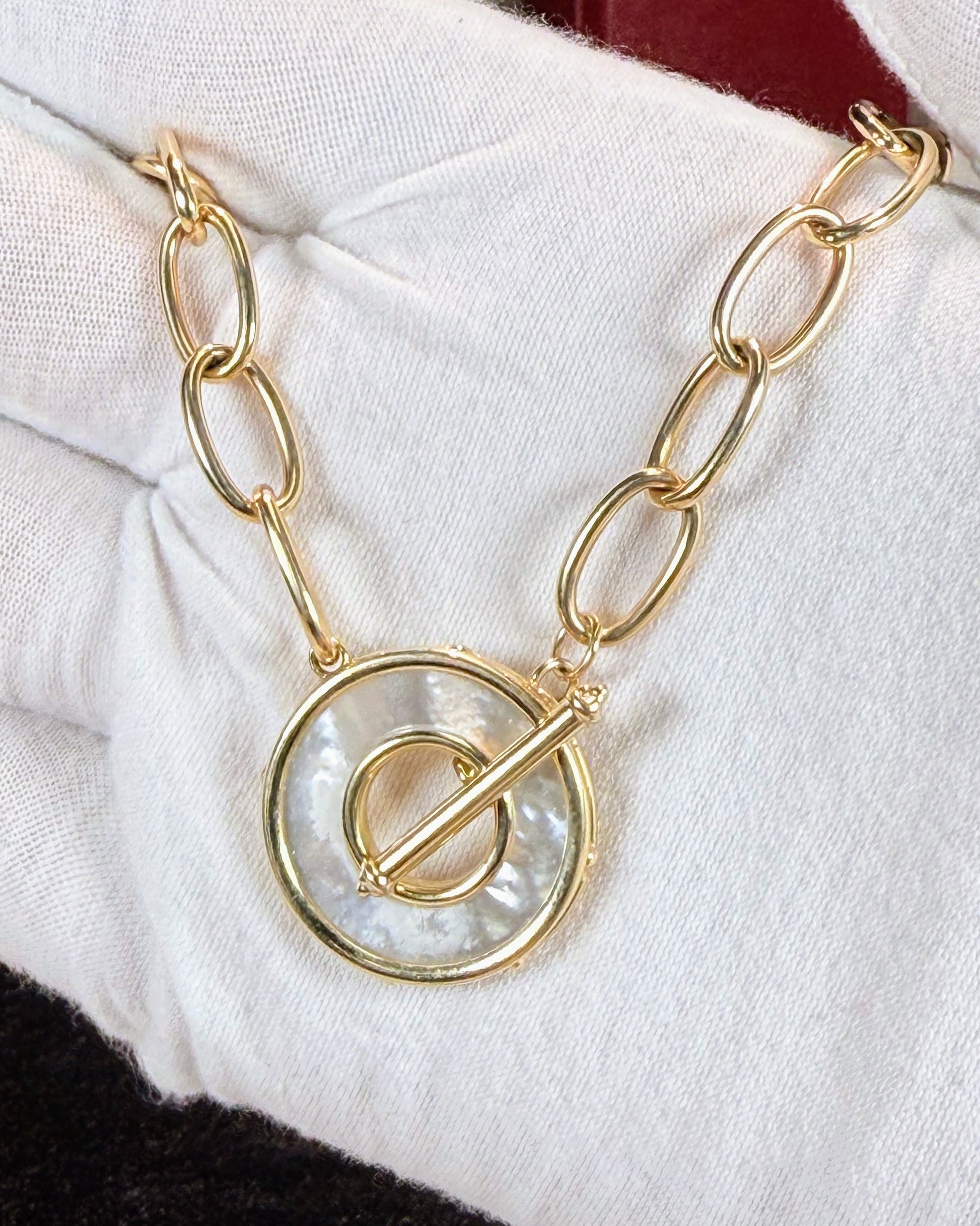 Chain Design 14k Yellow Gold Mother of Pearl Necklace