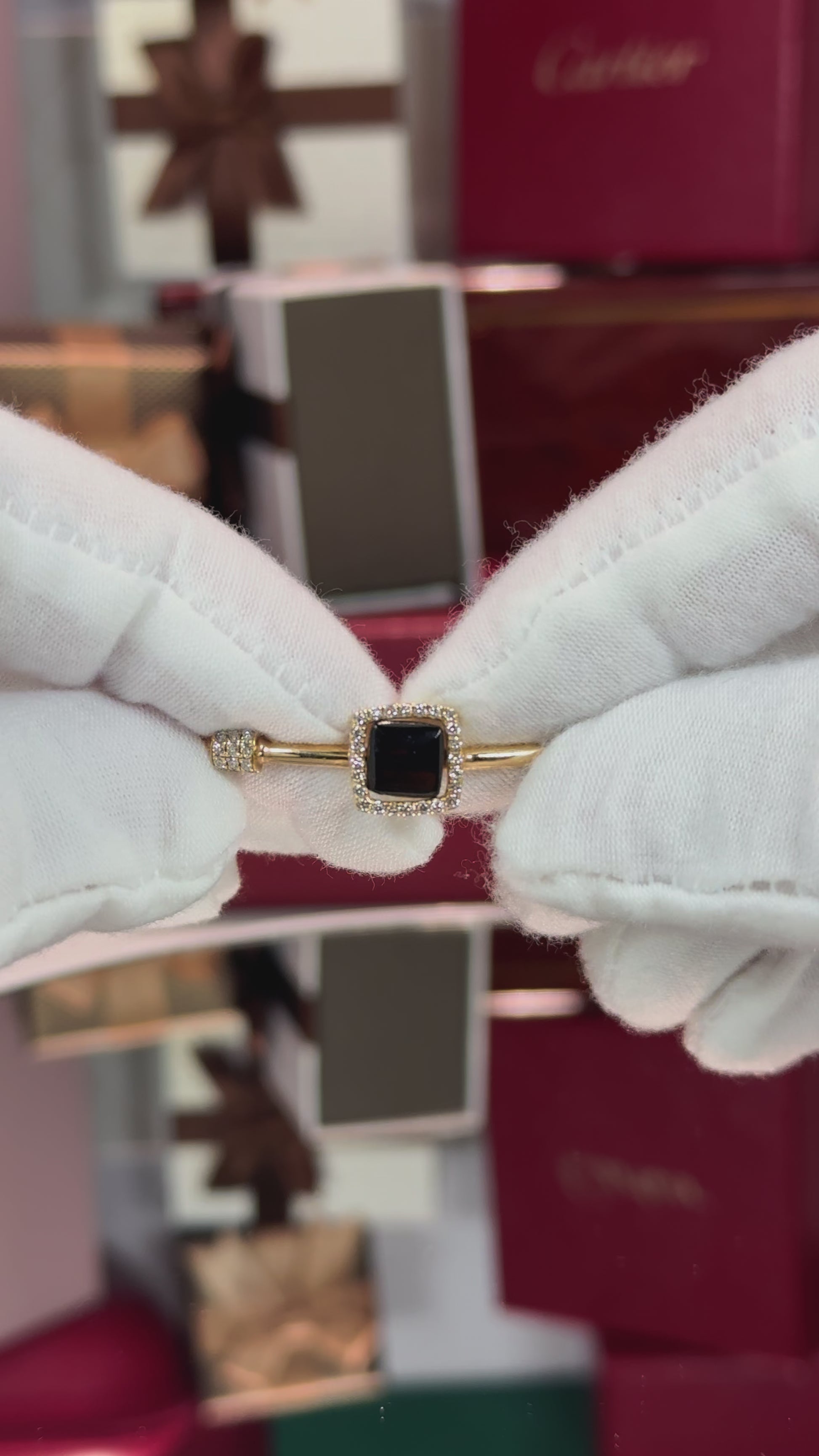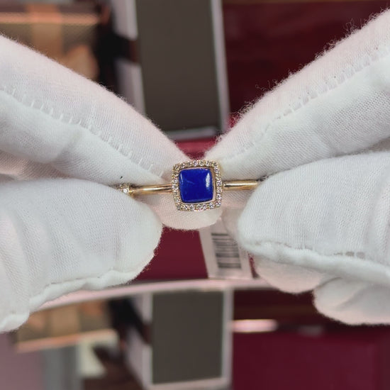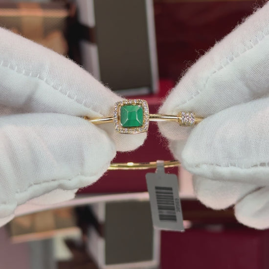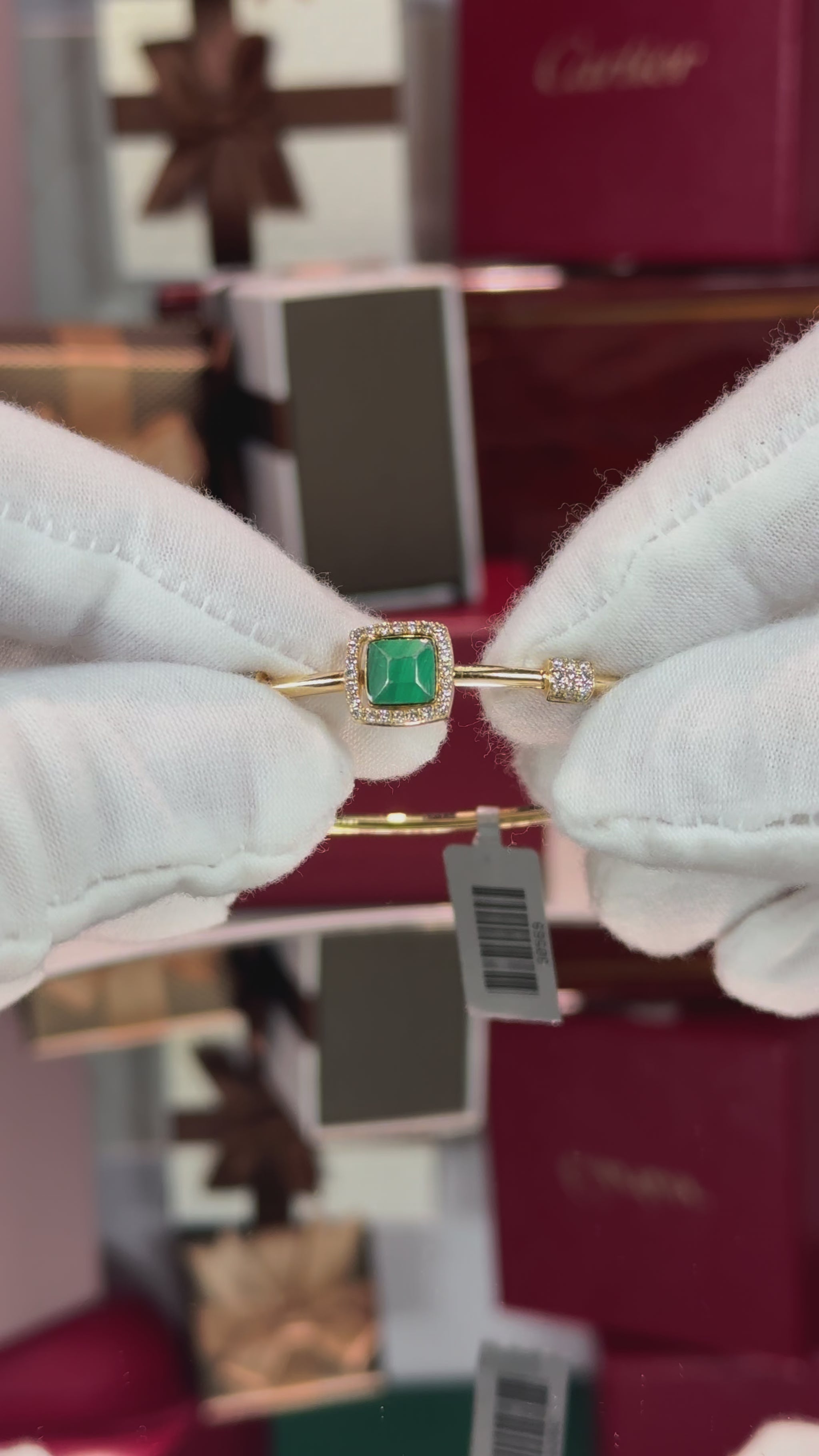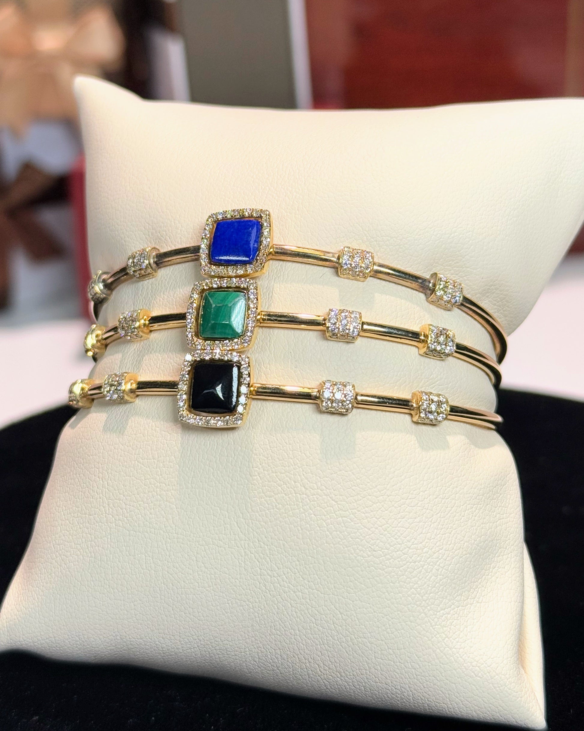 Color Stone Halo Diamond 14k Yellow Gold Bangle