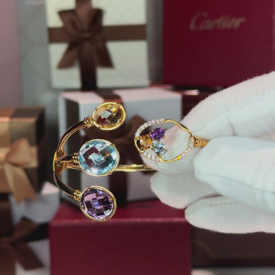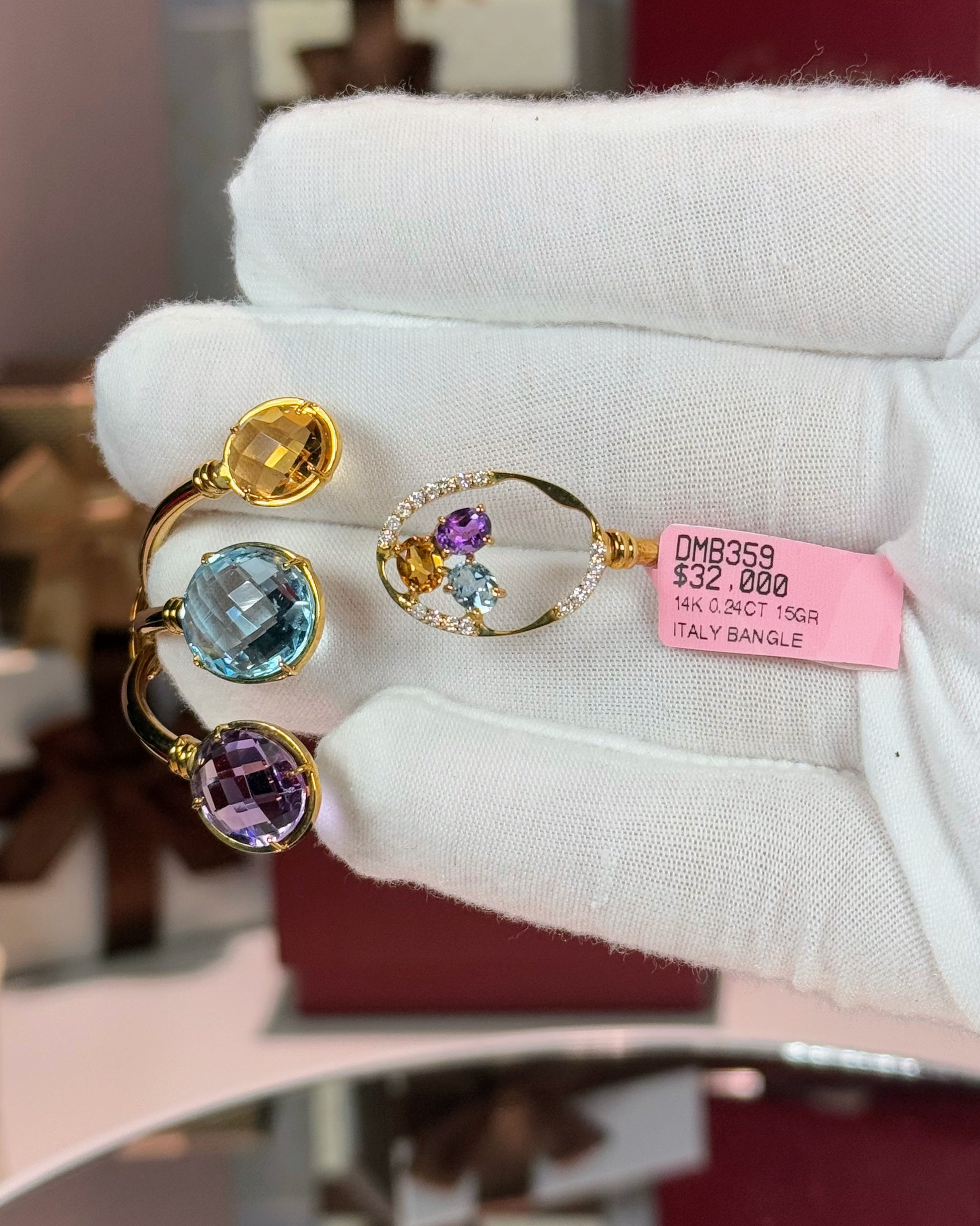 14k Yellow Gold Color Stones Open Cuff Diamond Bangle