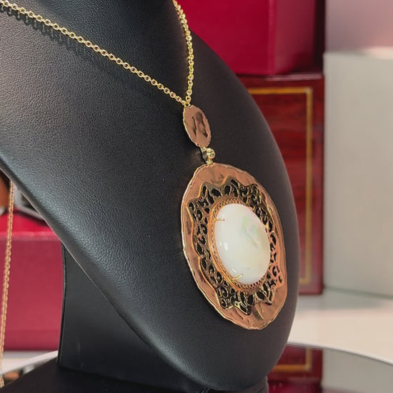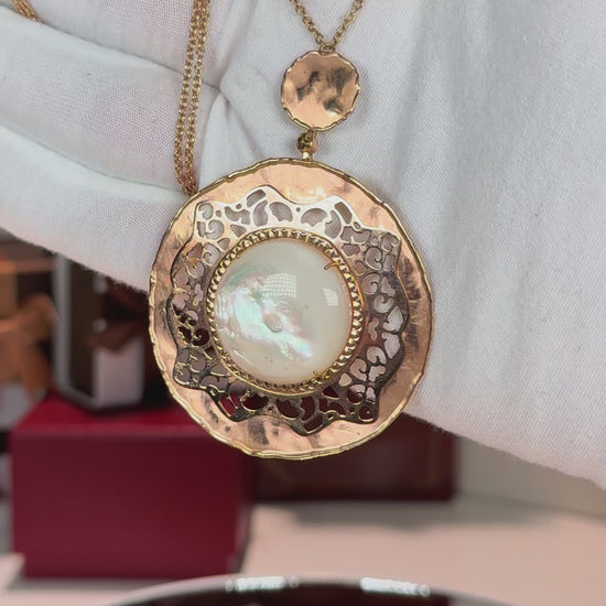 Mother of Pearl Filigree 14k Rose Gold Pendant Necklace