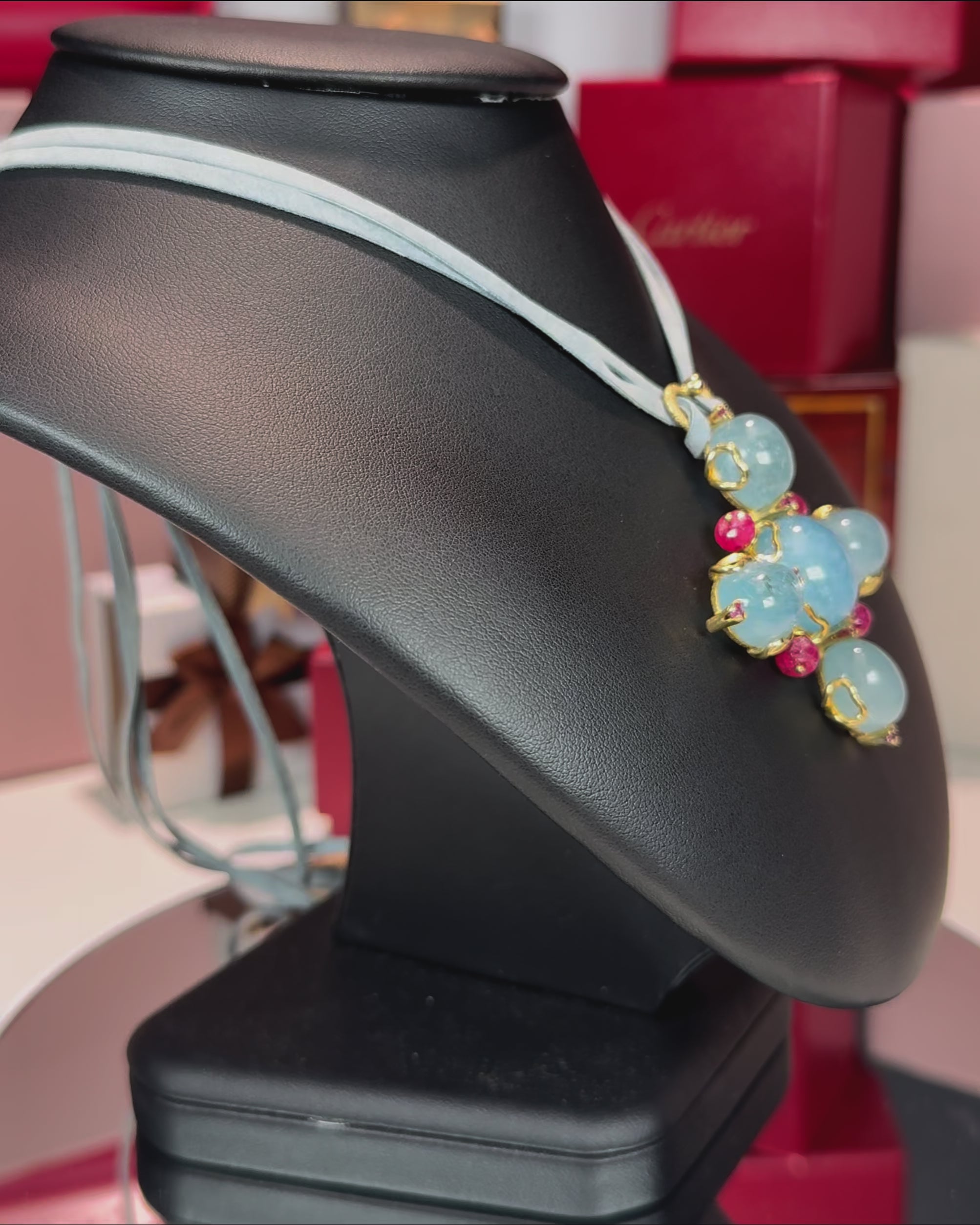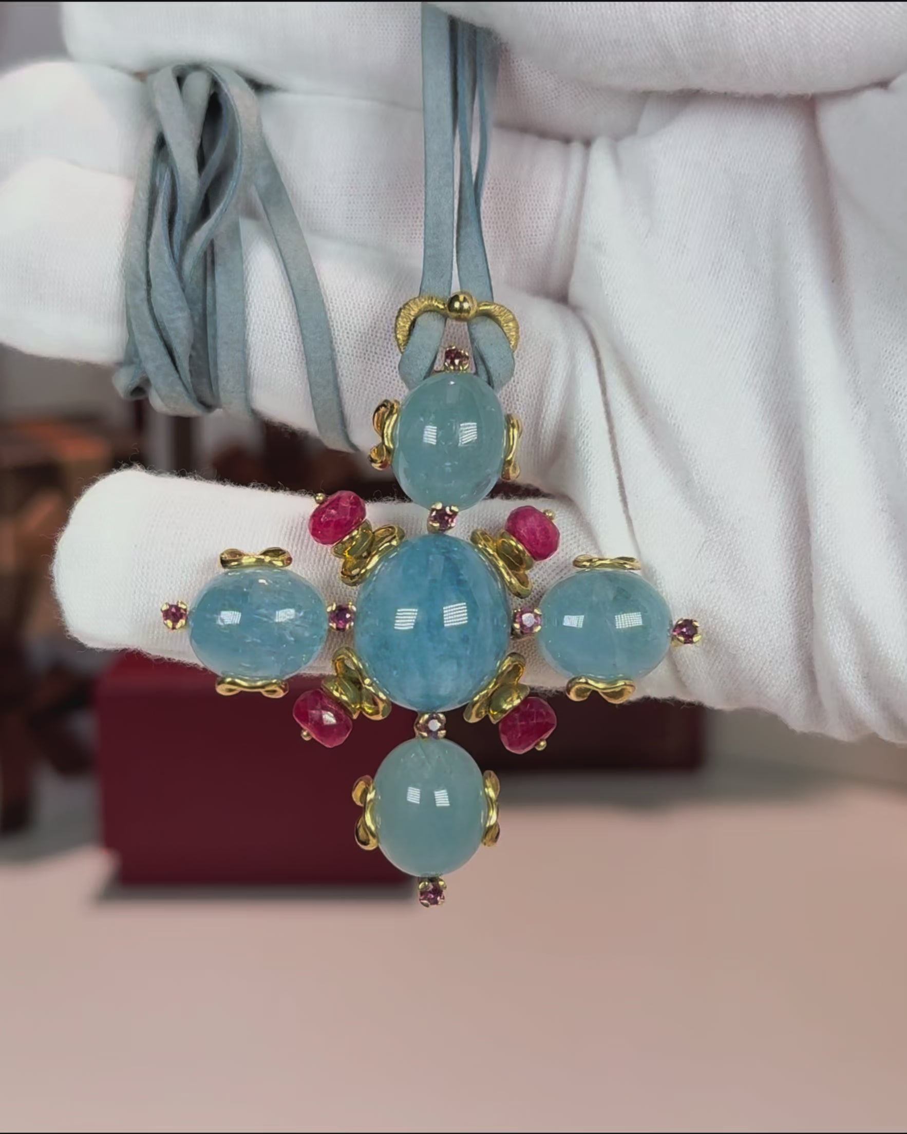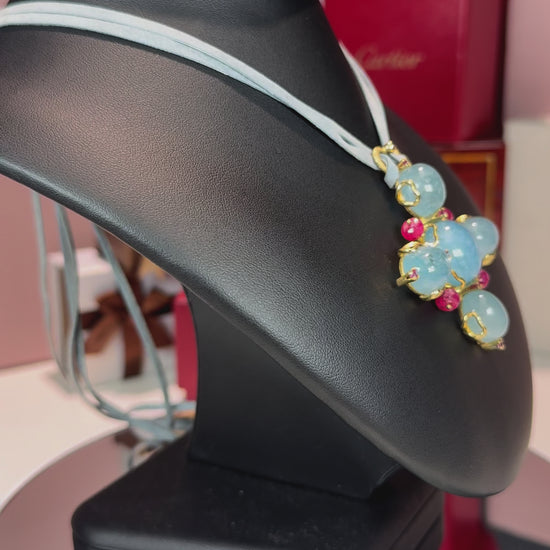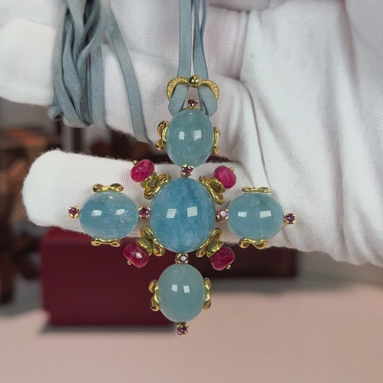 Aquamarine and Ruby 18k Yellow Gold Pendant