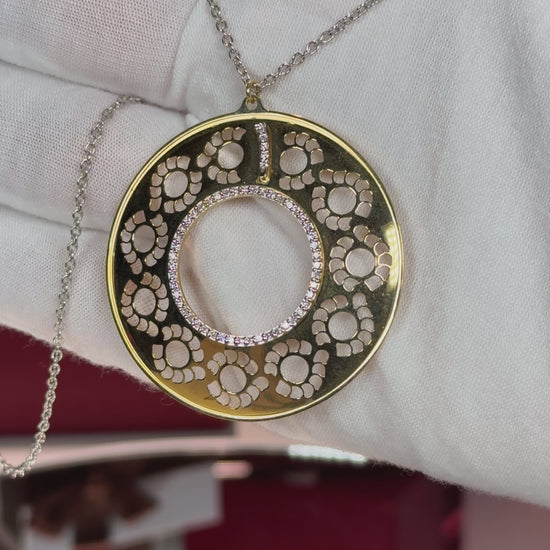 Filigree Donut Diamond Pandent Yellow Gold Necklae