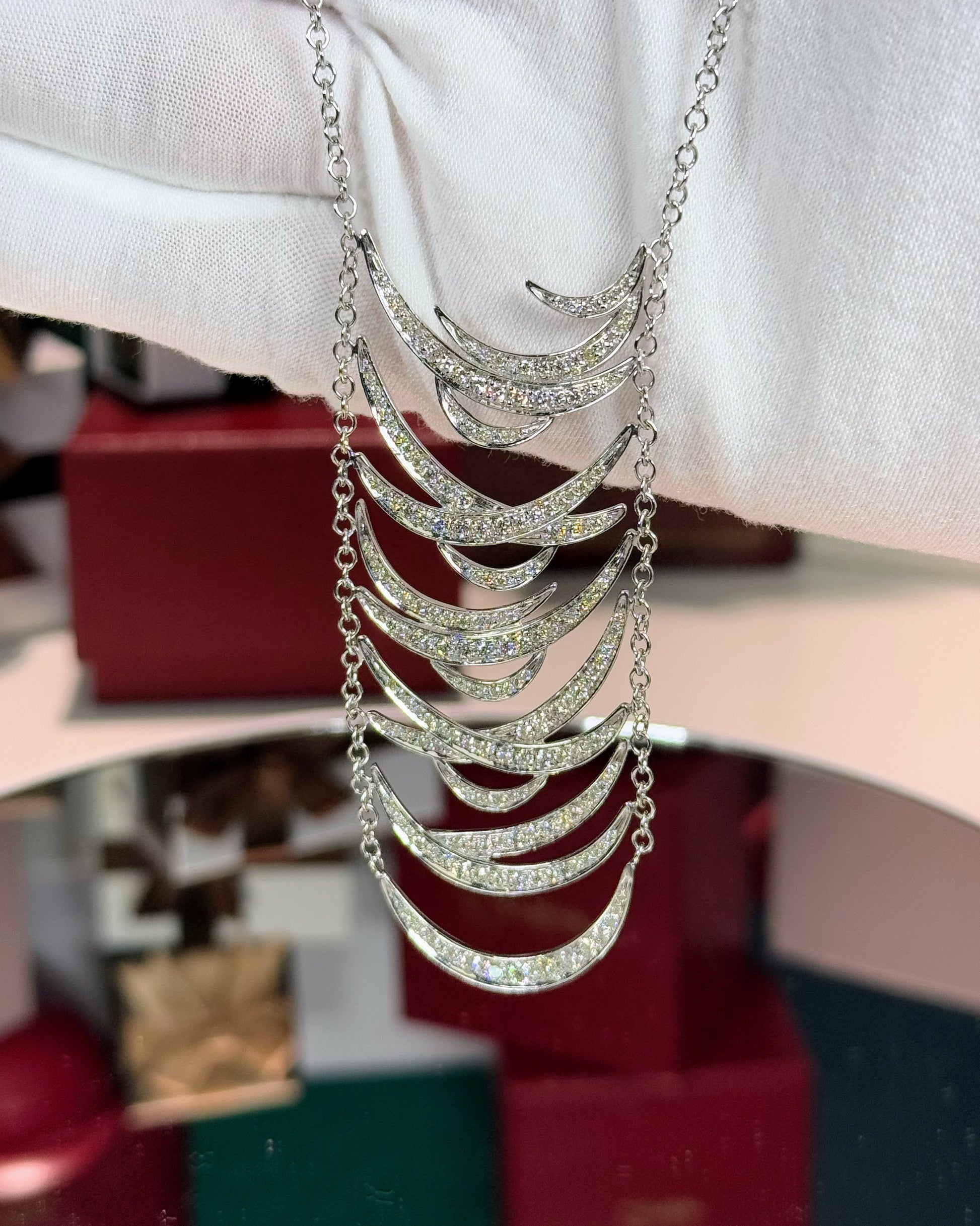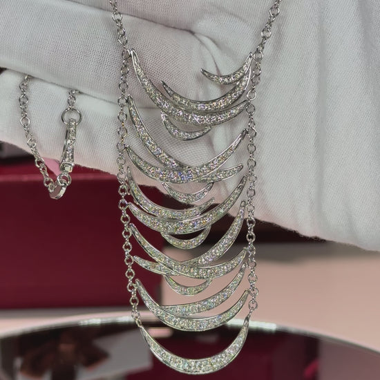 14k White Gold Multi-layered Crescents Diamond Necklace