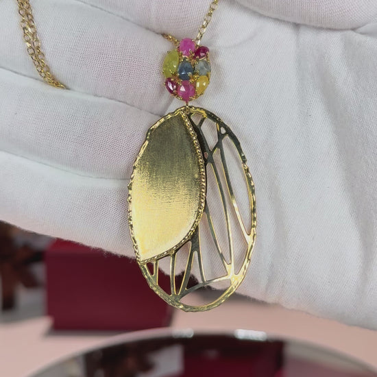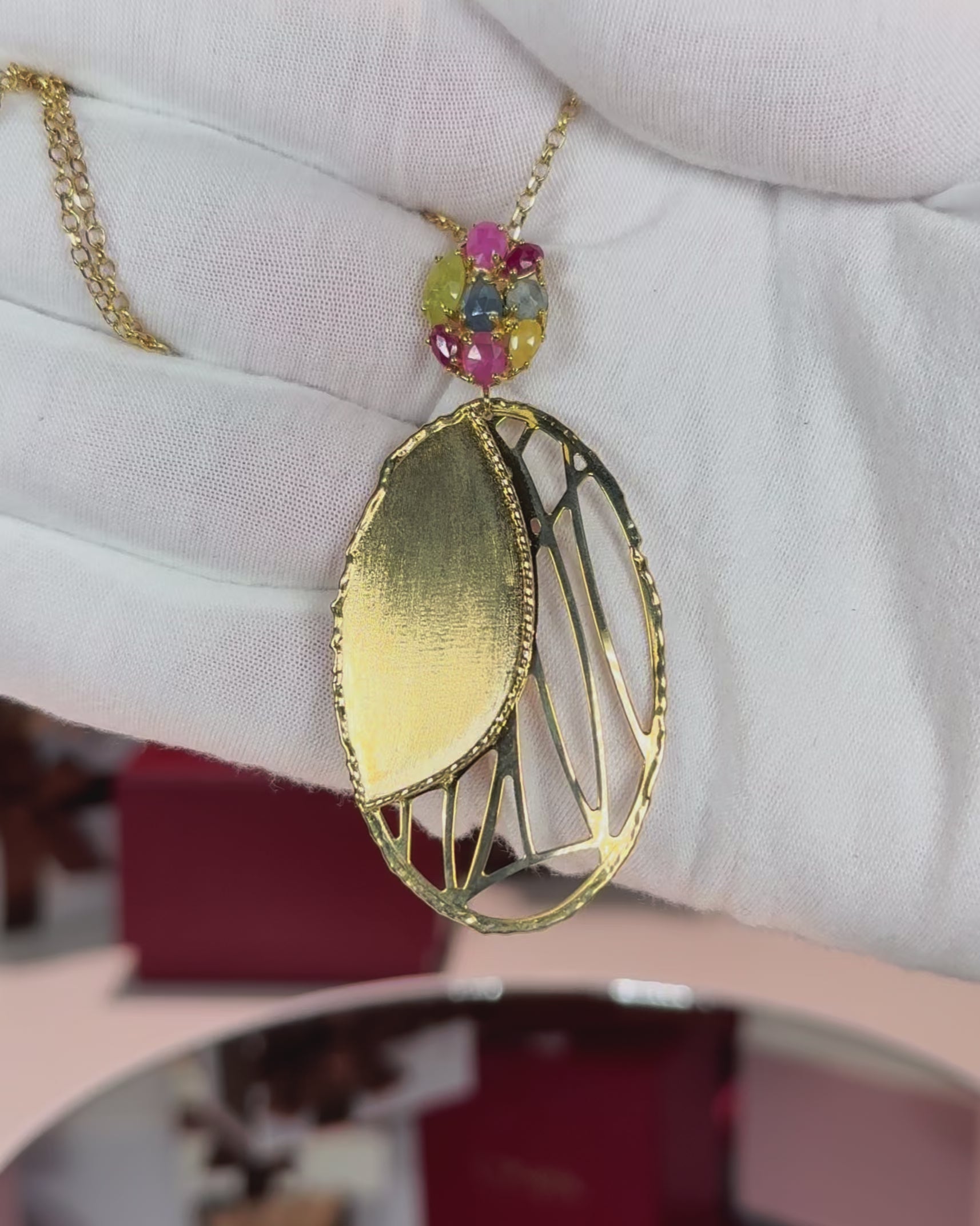 Colorful Sapphire 14k Yellow Gold Pendant Necklace
