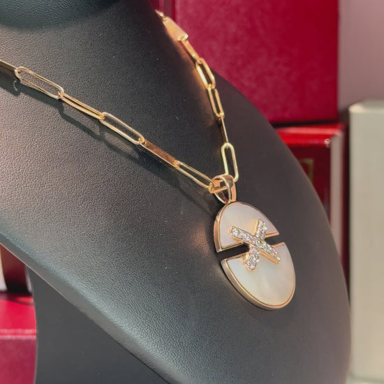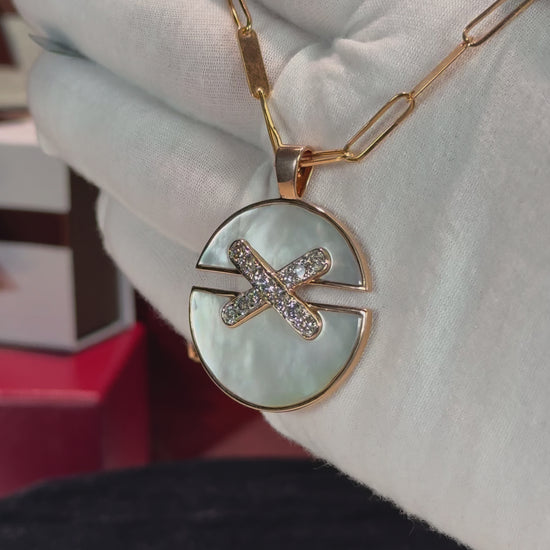 Mother of Pearl Round Purse Design 14k Yellow Gold Pendant Necklace