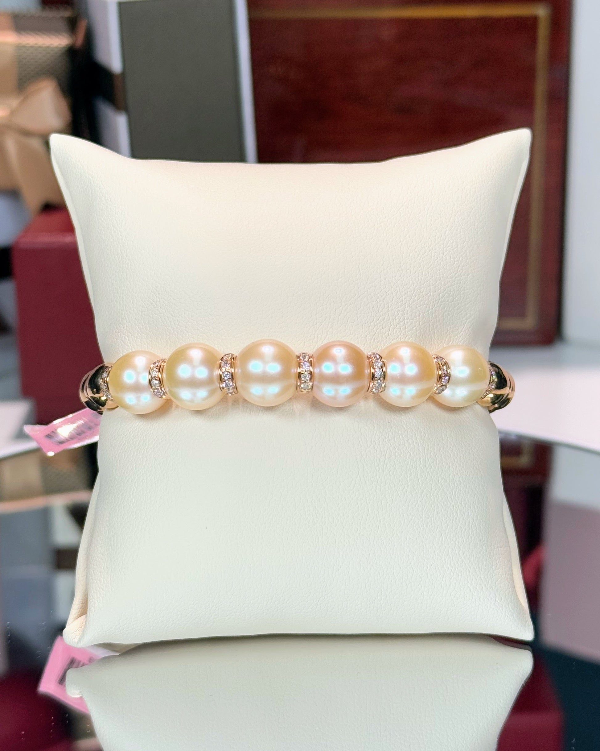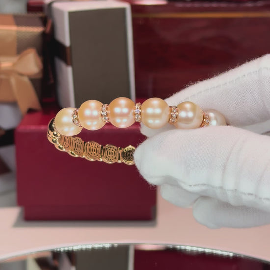 Rosaline Pearl and 14k Rose Gold Diamond Bangle Bracelet