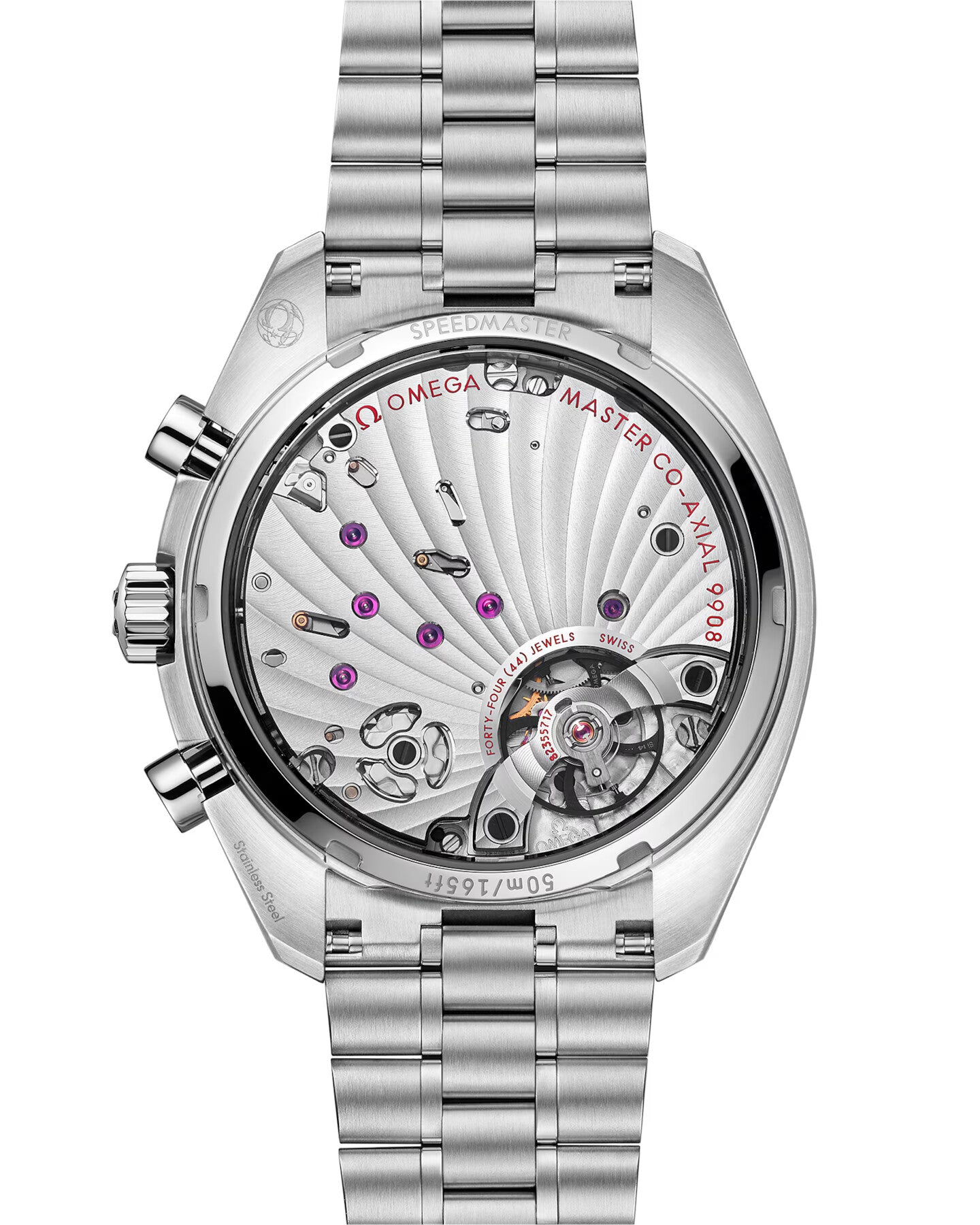 Presented on a stainless steel bracelet, the watch features a silvery small-seconds counter at 9H, and a silvery 60-minute and 12-hour recorder at 3H. Inside, the timepiece is driven by the OMEGA Co-Axial Master Chronometer Calibre 9908.