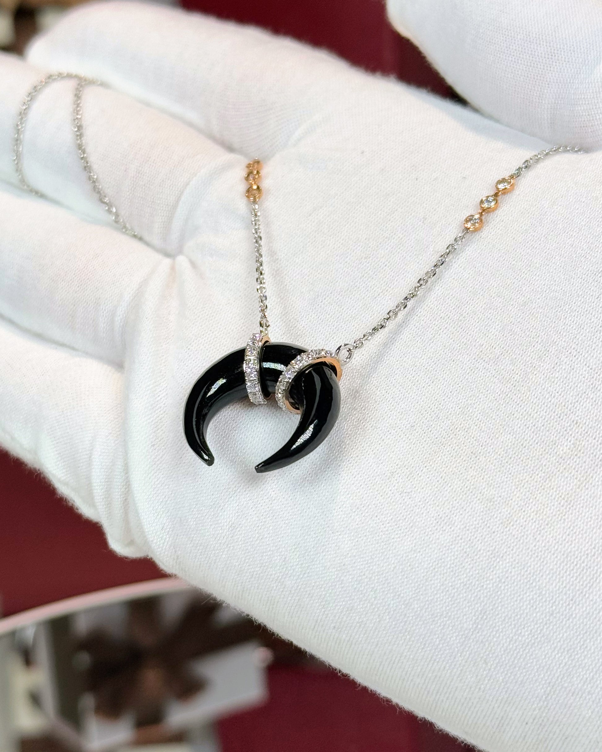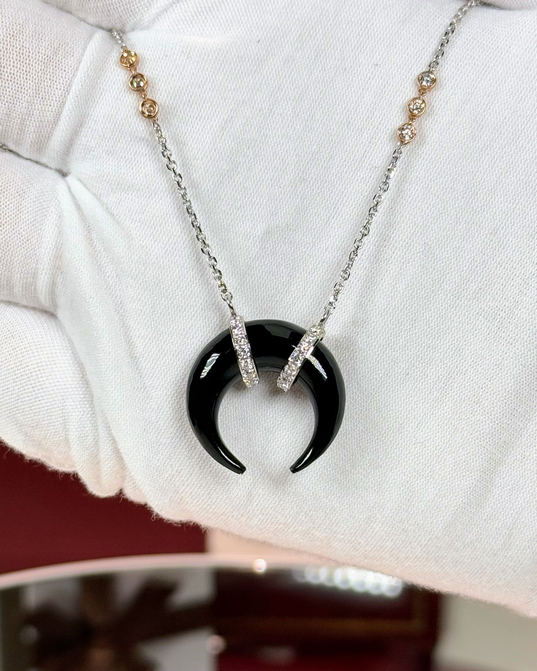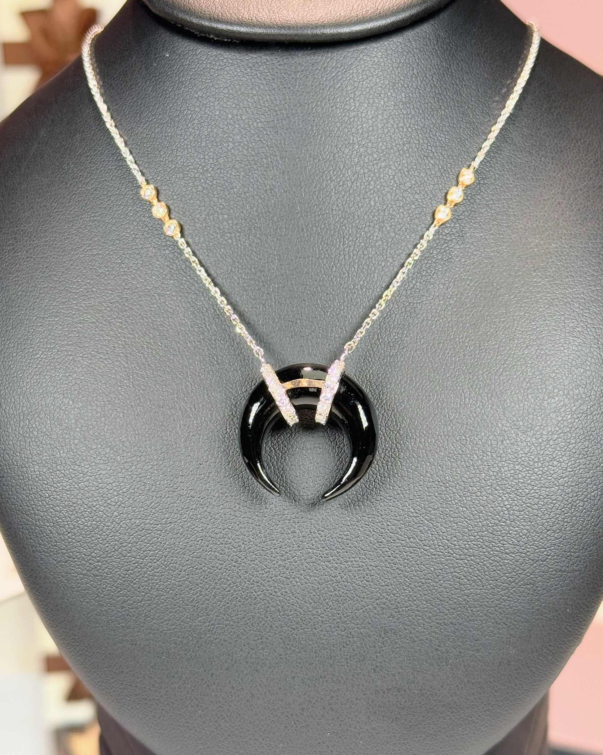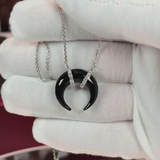 Onyx Crescent Pendant 14k White Gold Necklace