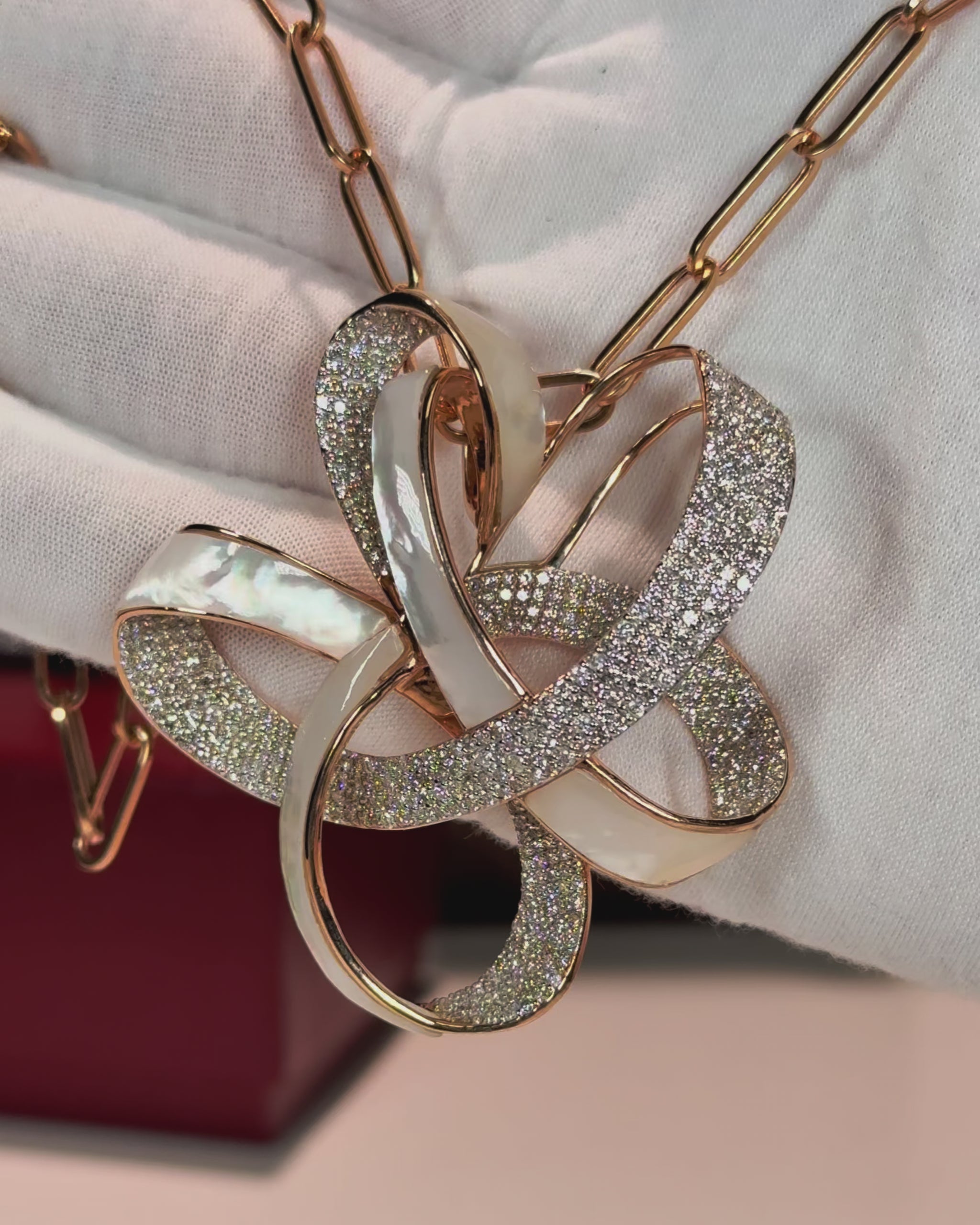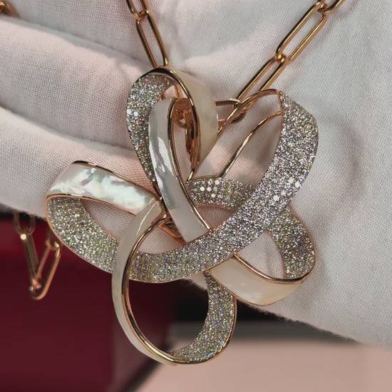 Ribbon Design MoP and Diamond 14k Rose Gold Necklace