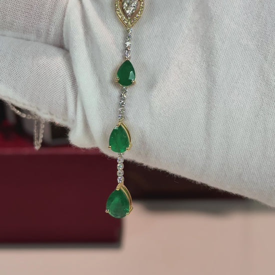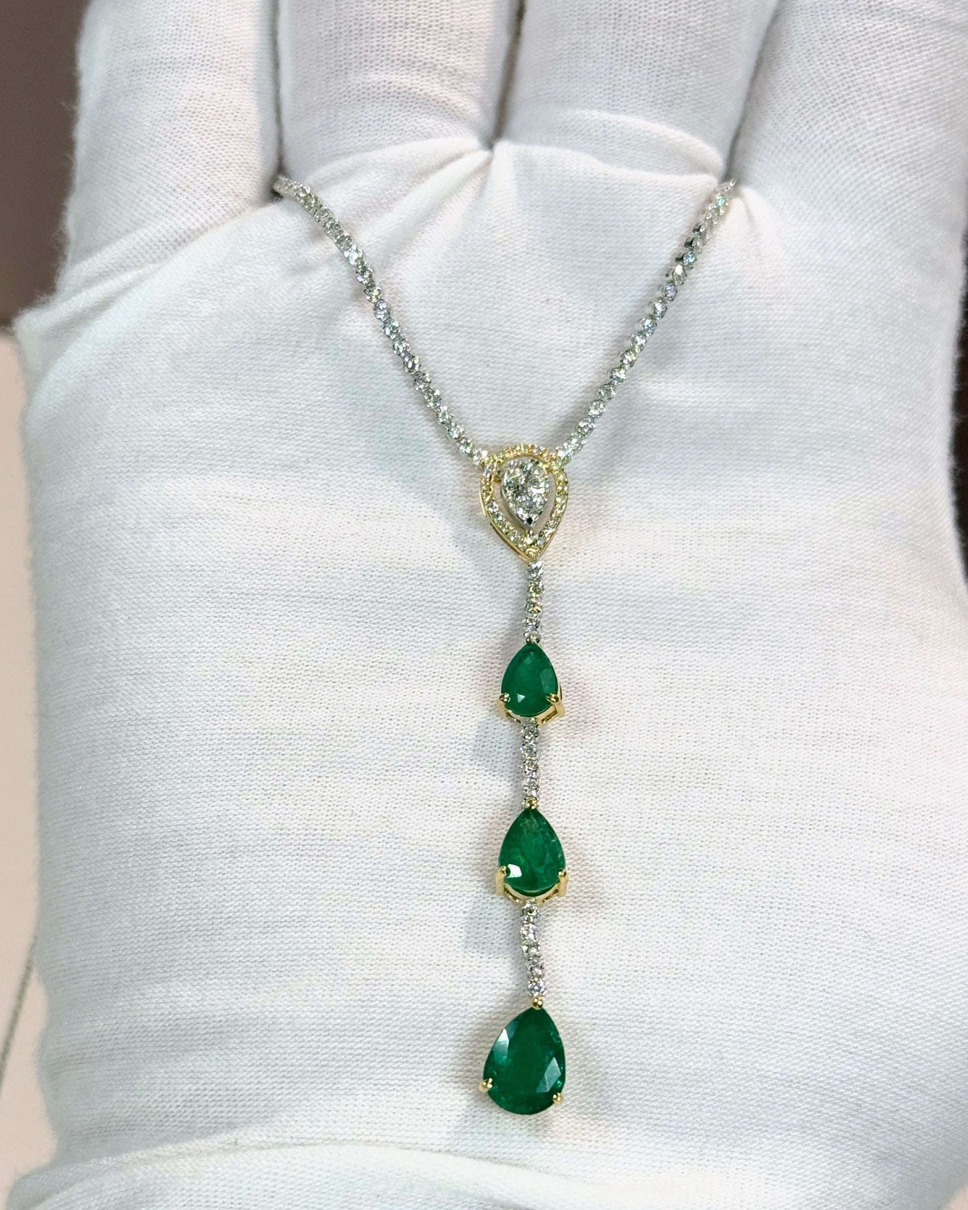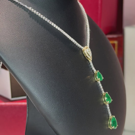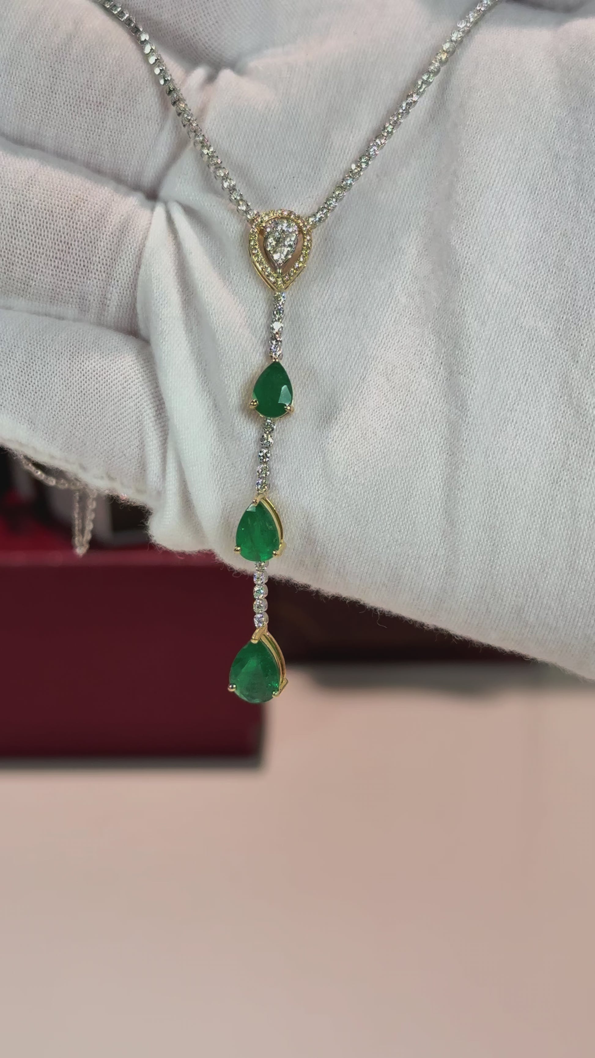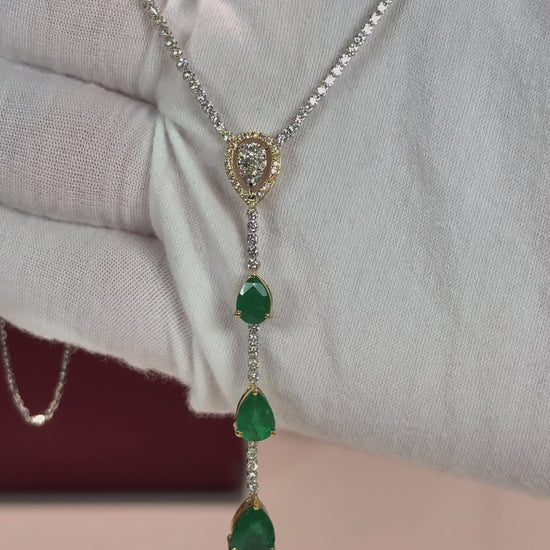 18k White Gold Three Pear-shaped Emeralds Lariat Necklace