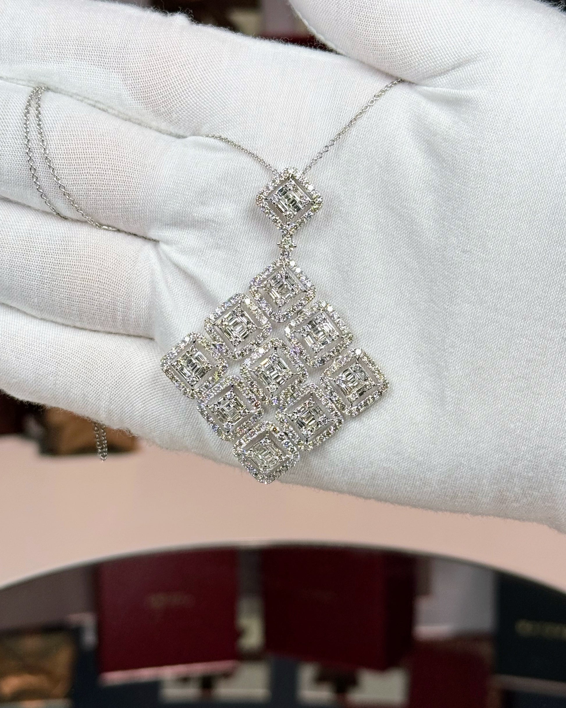 14k White Gold Diamond Cluster Pendant Necklace