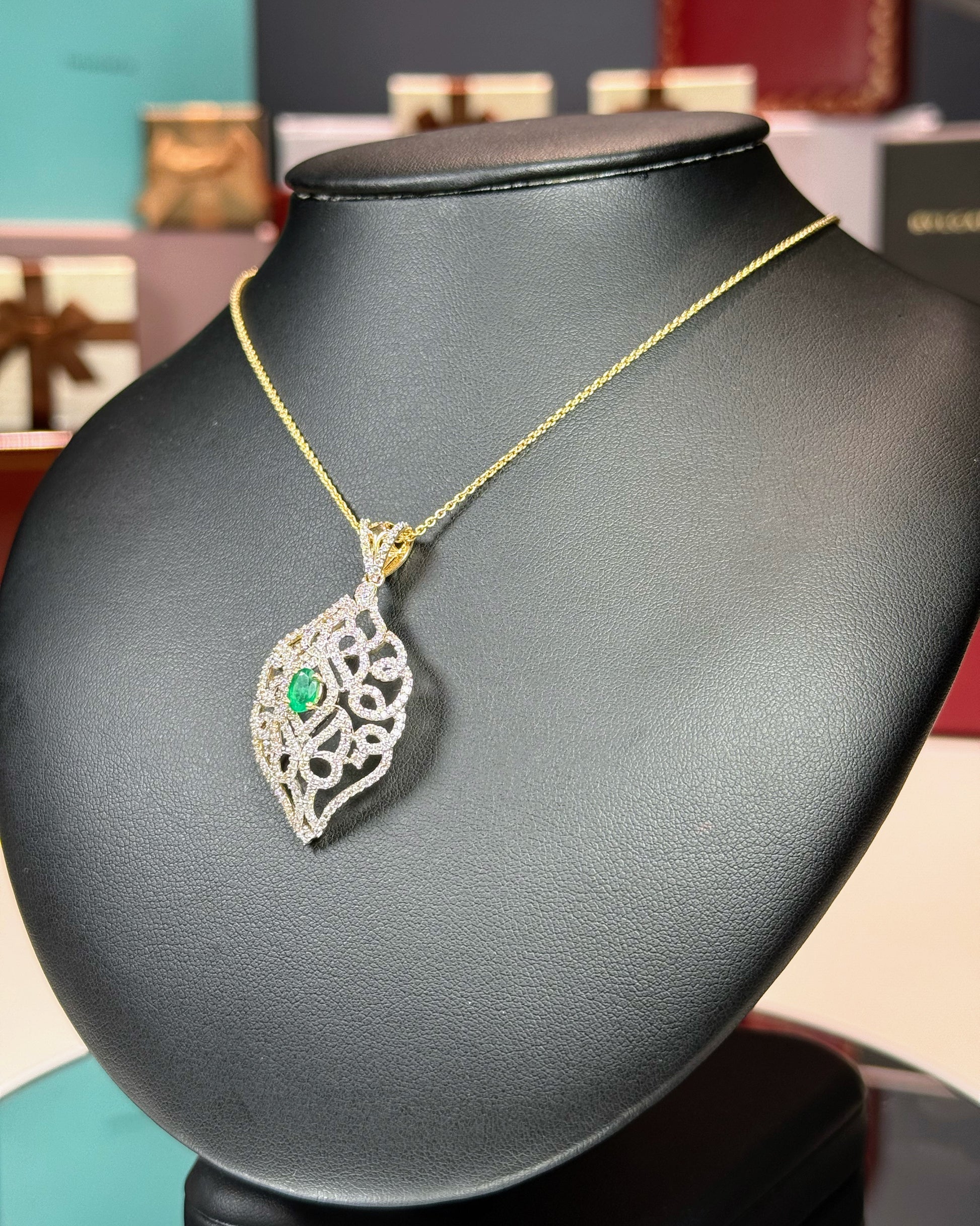 14k White Gold Diamond Paved Filigree Pendant Necklace