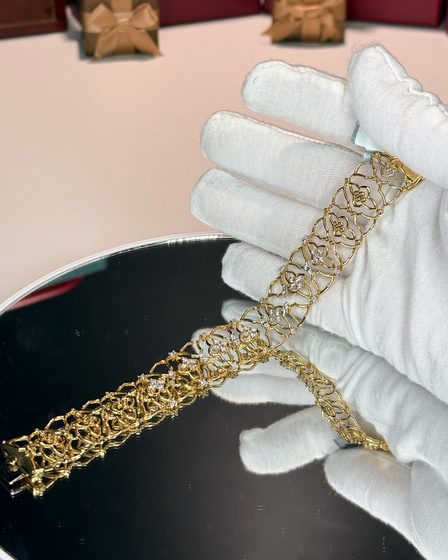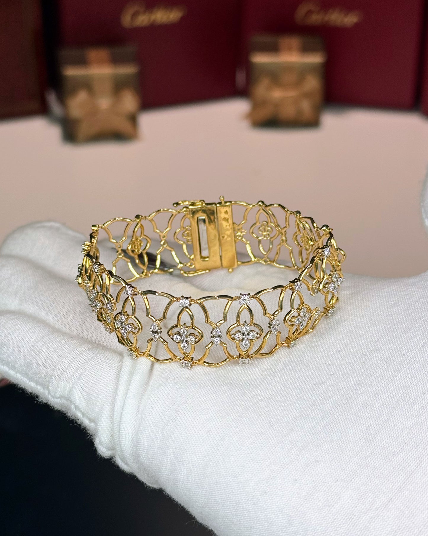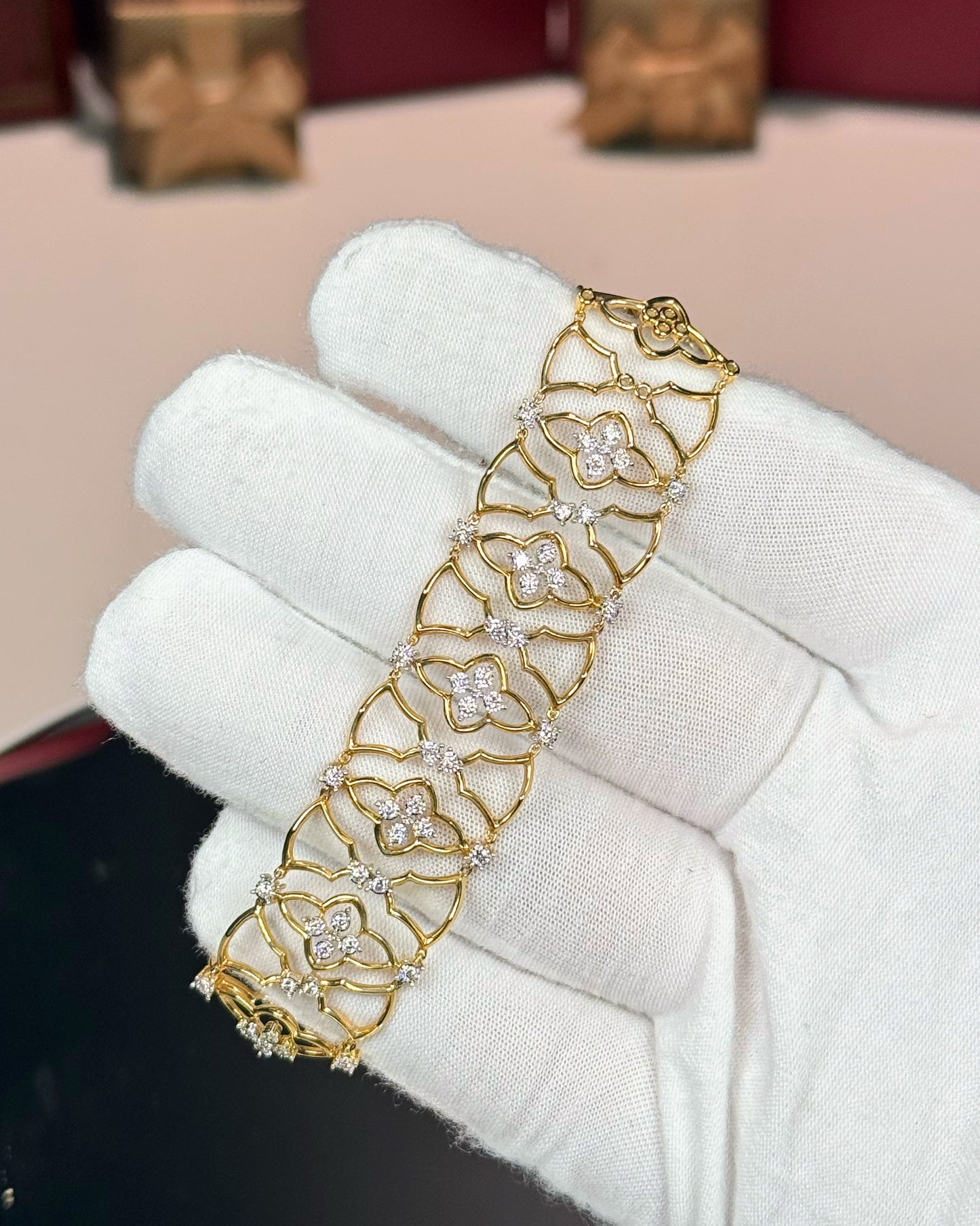14k Yellow Gold Floral Pattern Diamond Bracelet