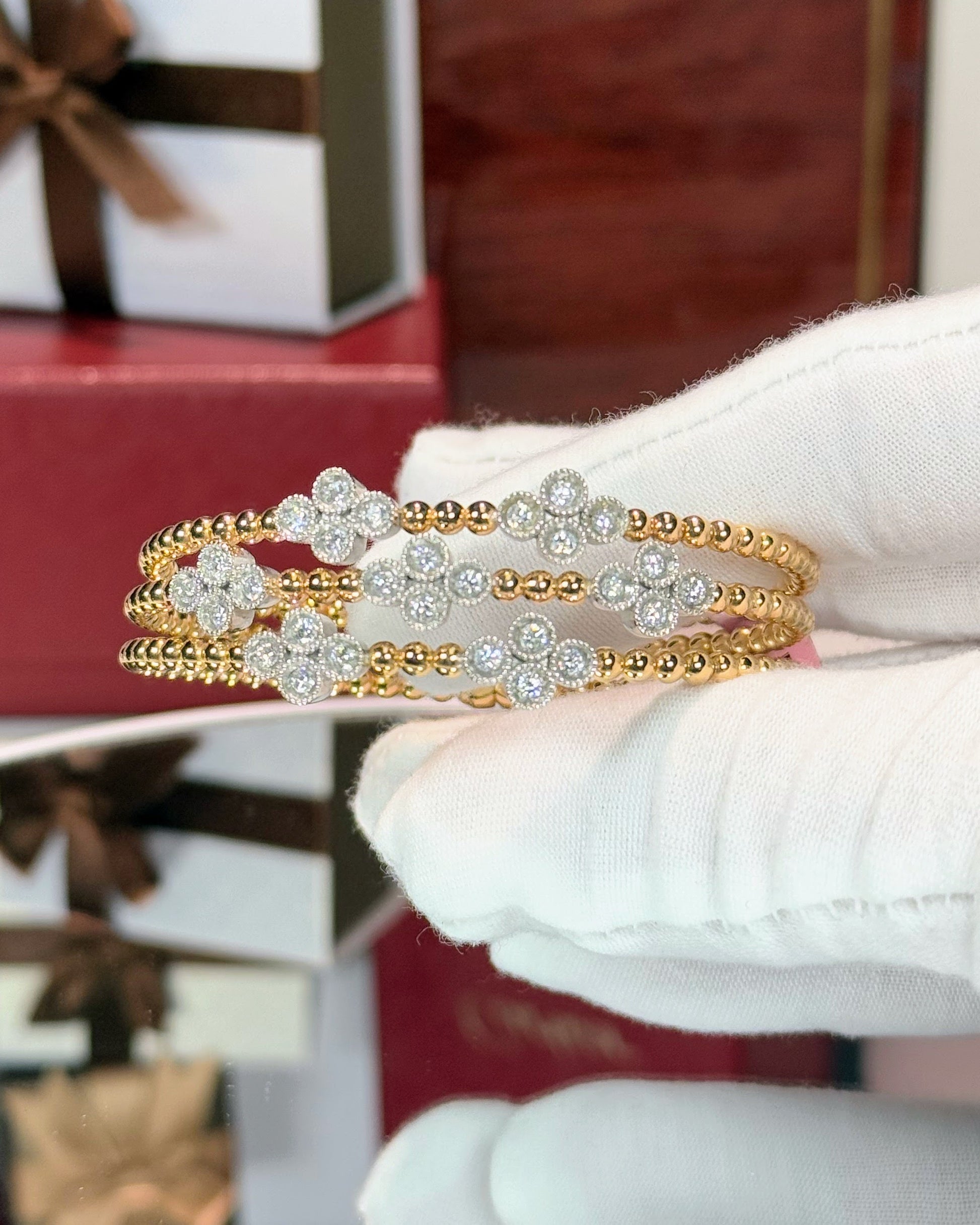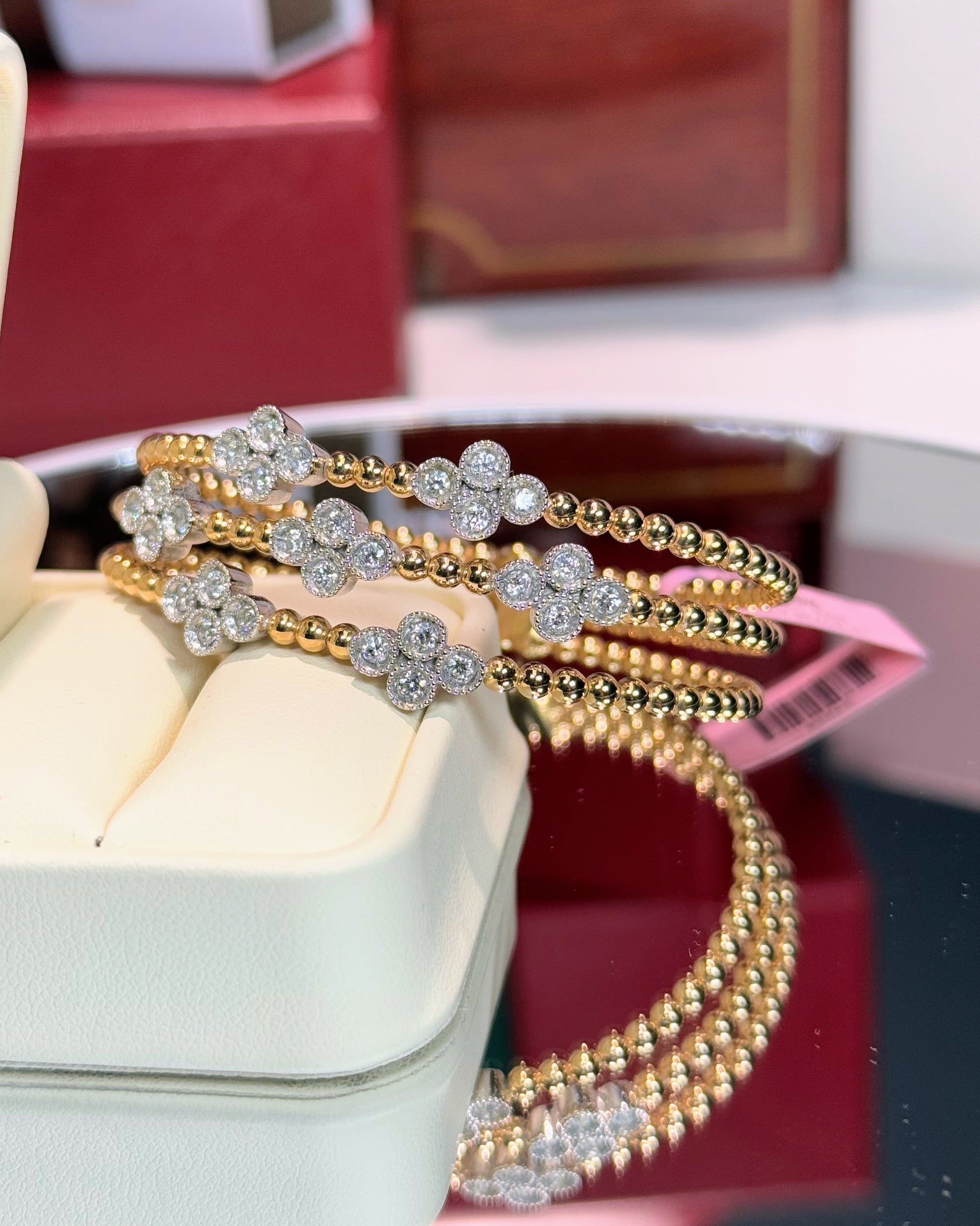 14k Yellow Gold Three Layer Diamond Clover Bangle