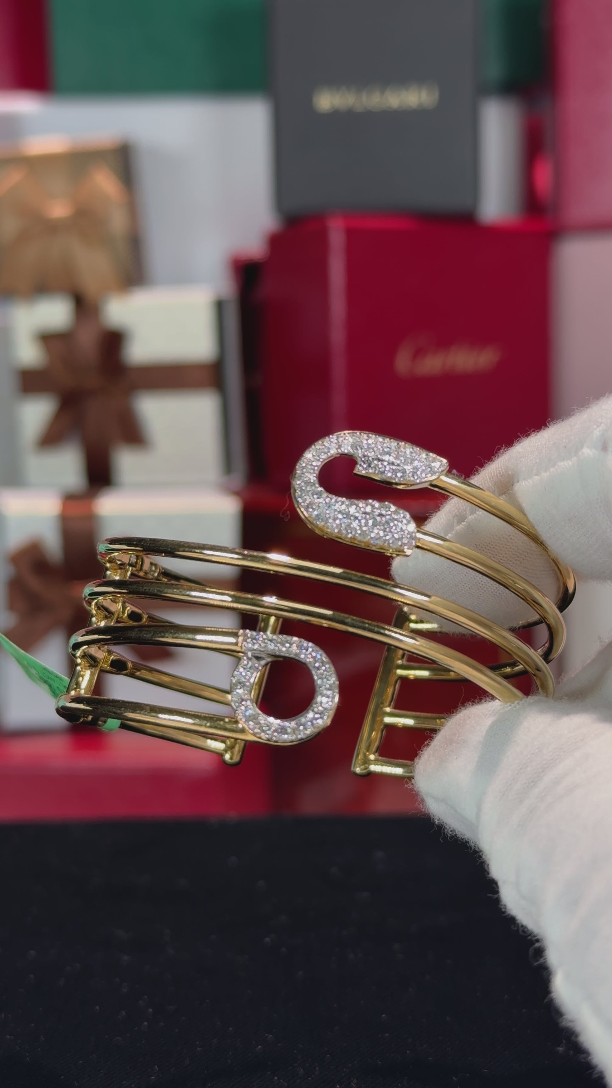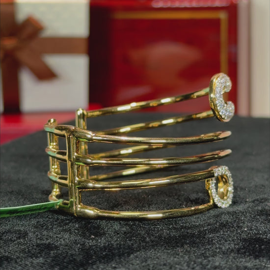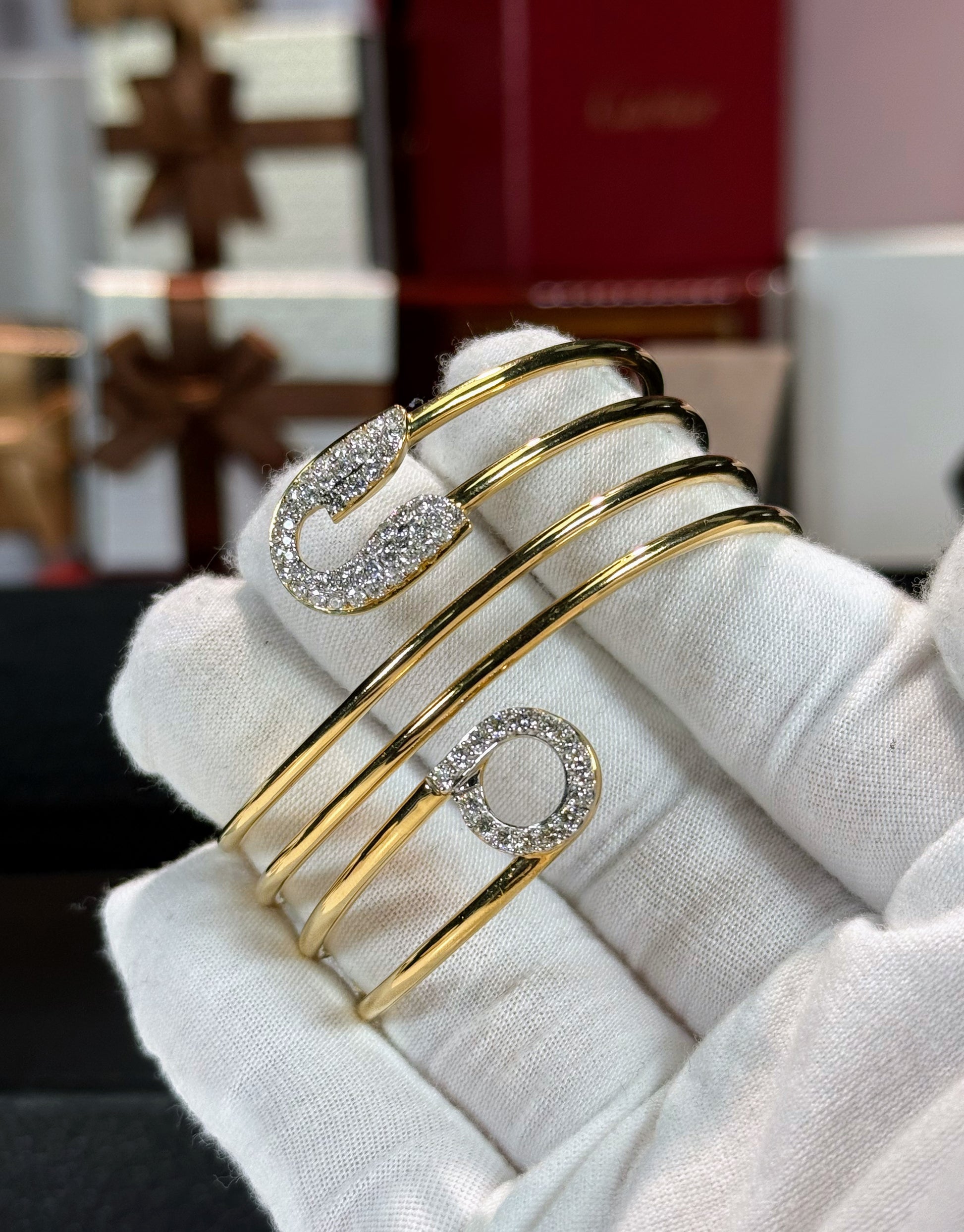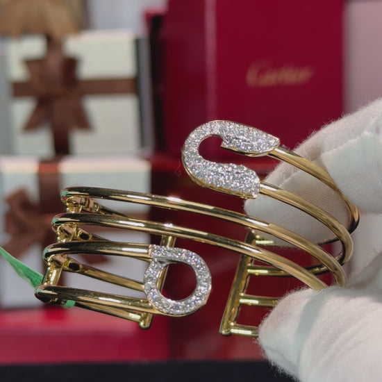Three Wrap Safety Pin 18k Yellow Gold Diamond Bangle